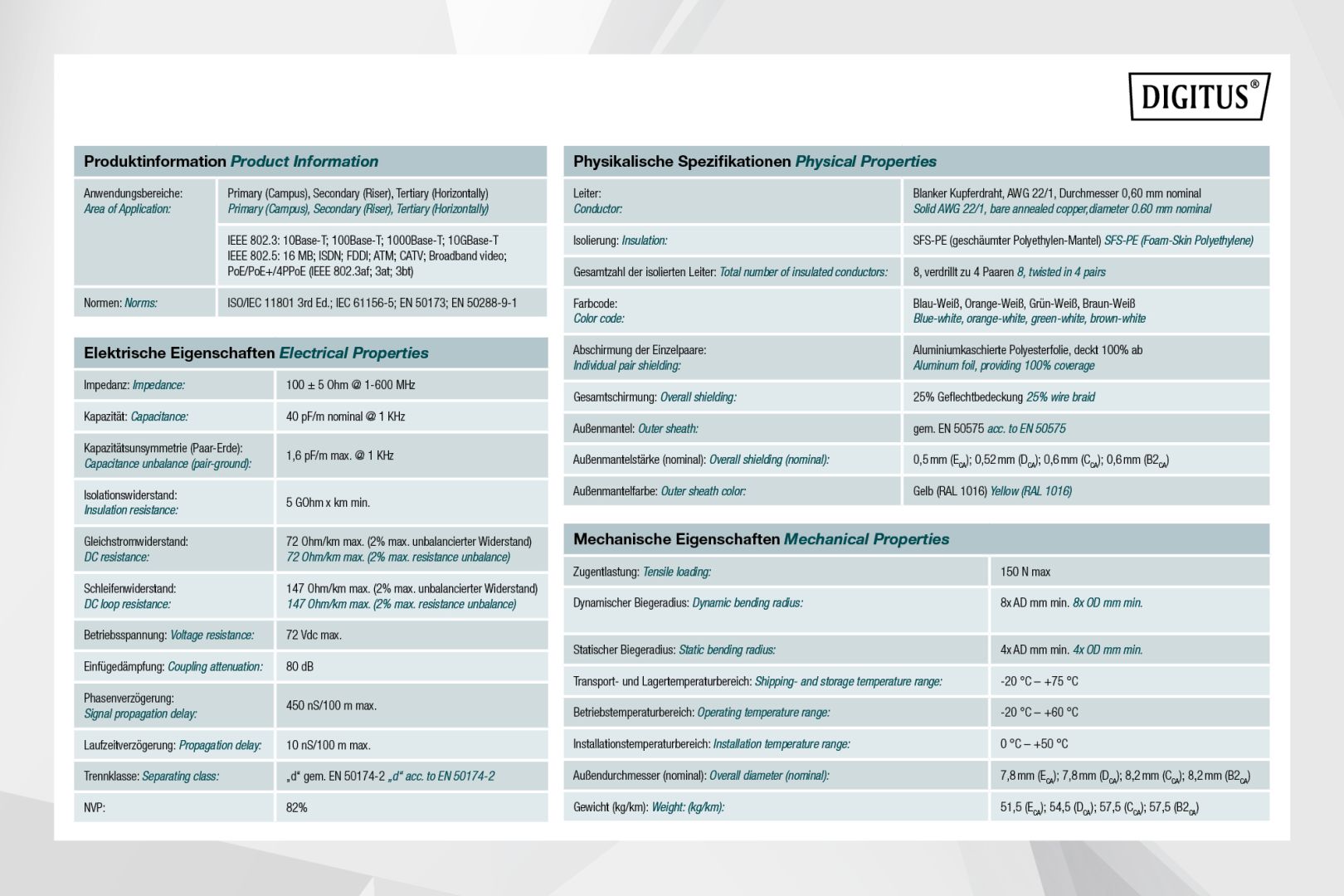 Digitus CAT7A S-FTP installation cable 100m Yellow