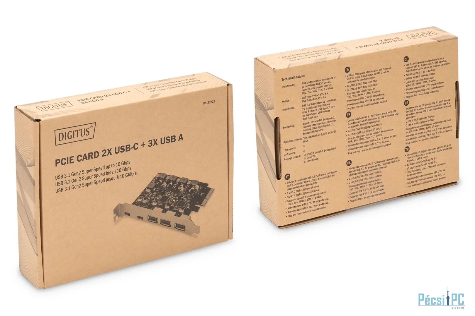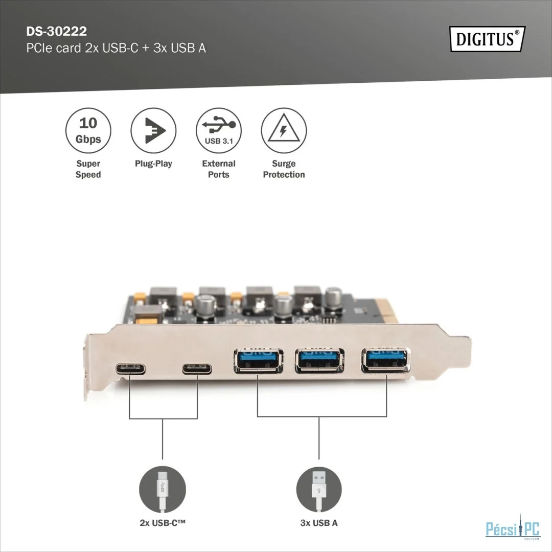 Digitus PCIe card 2x USB-C + 3x USB A 5x SuperSpeed 10Gbps