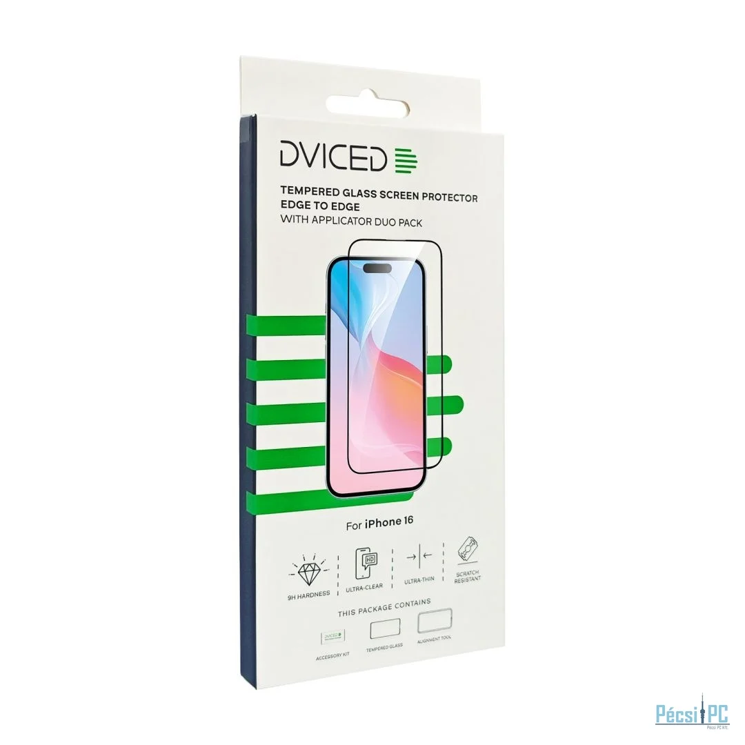 A Dviced Edge-to-Edge edzett üvegből készült képernyővédő átfogó védelmet nyújt iPhone 16 készülékének, teljes lefedettséggel és kivételes tisztasággal. Integrált applikátorral érkezik az egyszerű és precíz telepítéshez.
