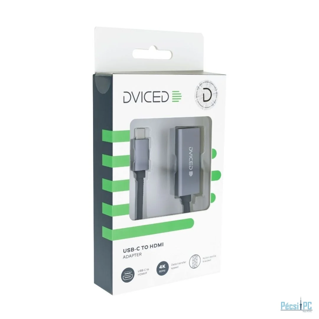 Az elegáns szürke kivitelű, robusztus alumínium házzal és tartós, fonott fekete kábellel tervezett Dviced adaptert tartósnak tervezték, így ellenáll a mindennapi használat során fellépő kopásnak. Kompakt és könnyű kialakításának köszönhetően tökéletes társ utazáshoz vagy mobil munkaállomásokhoz.