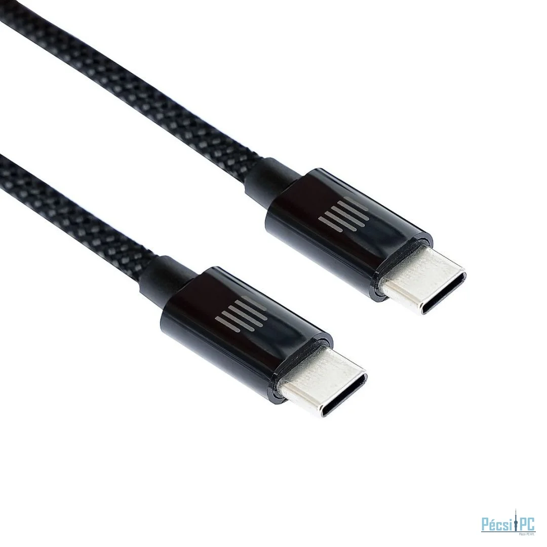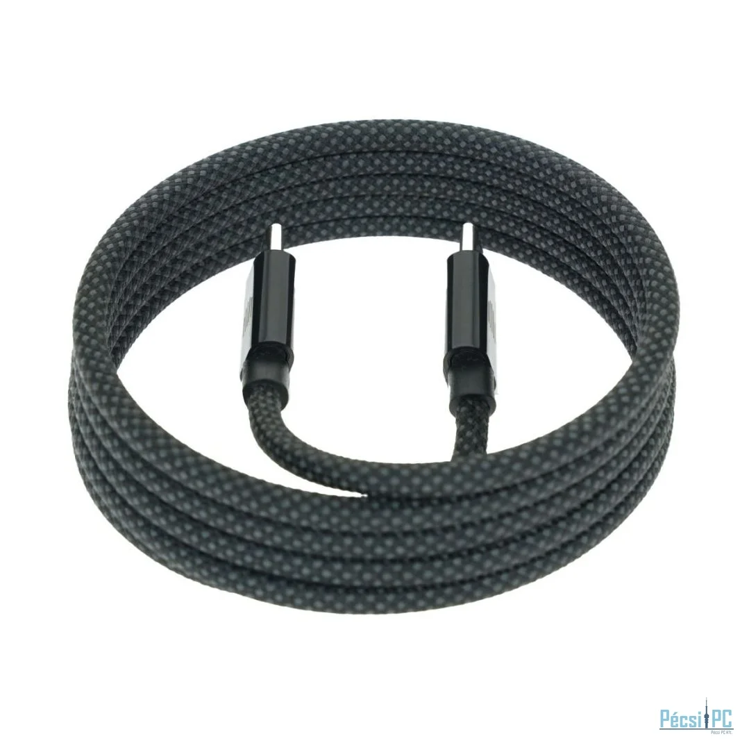 USB kábel, USB-C, USB-C, USB2.0, Male/Male, 1,25m, Grey, Töltő és adatkábel, Szövetborítás