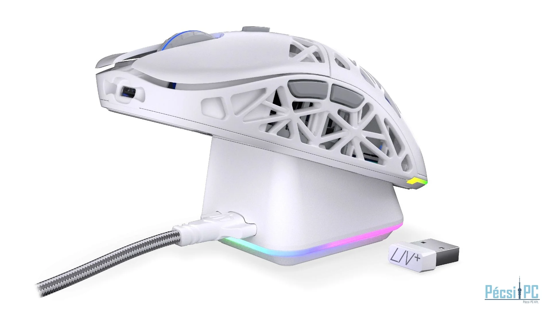 Vezeték nélküli, Wireless 2,4GHz, Bluetooth, Optikai, 26000DPI, White, Újratölthető, RGB, Gamer