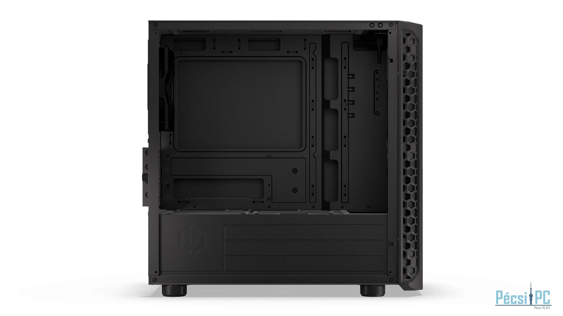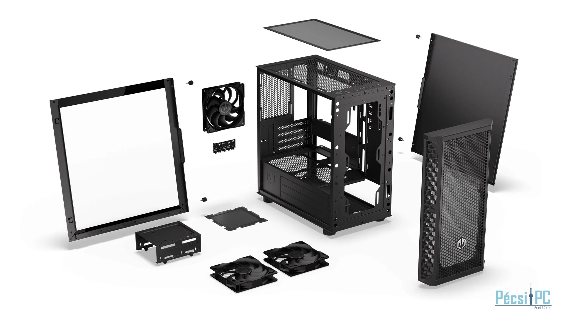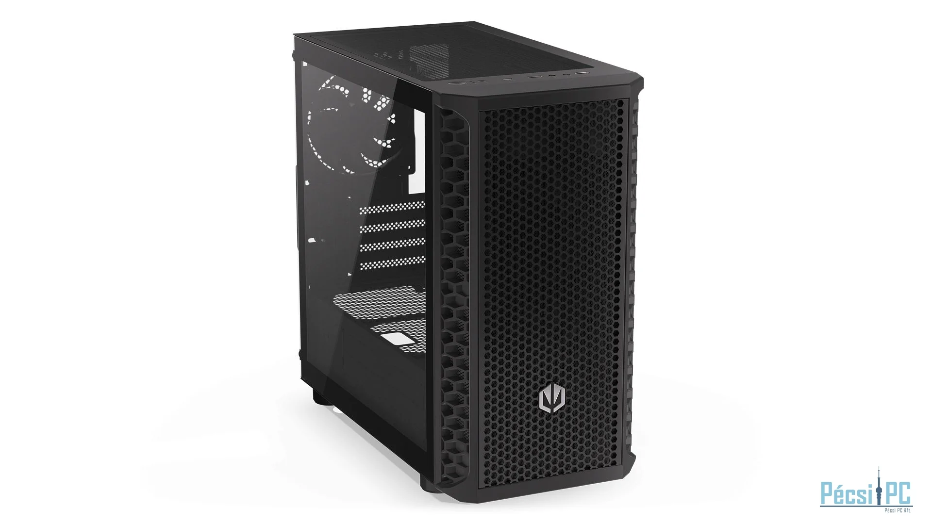 microATX, Black, 2x3,5", 2x2,5", 2xUSB3.2, 1xUSB Type-C, Audio, Táp nélkül, 401x387x205mm, Ventilátor:3x12cm, Tempered glass window