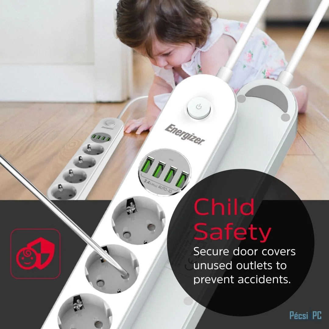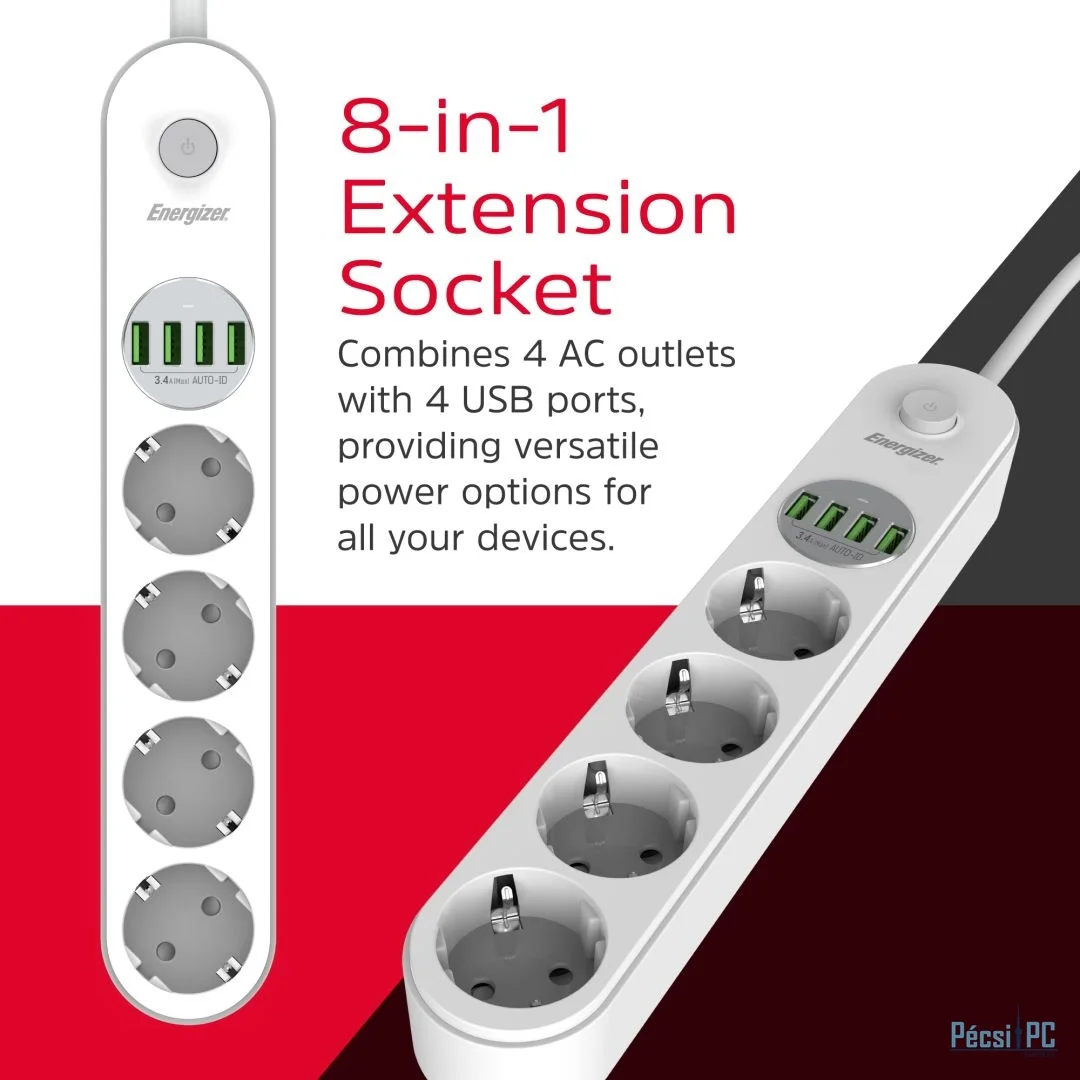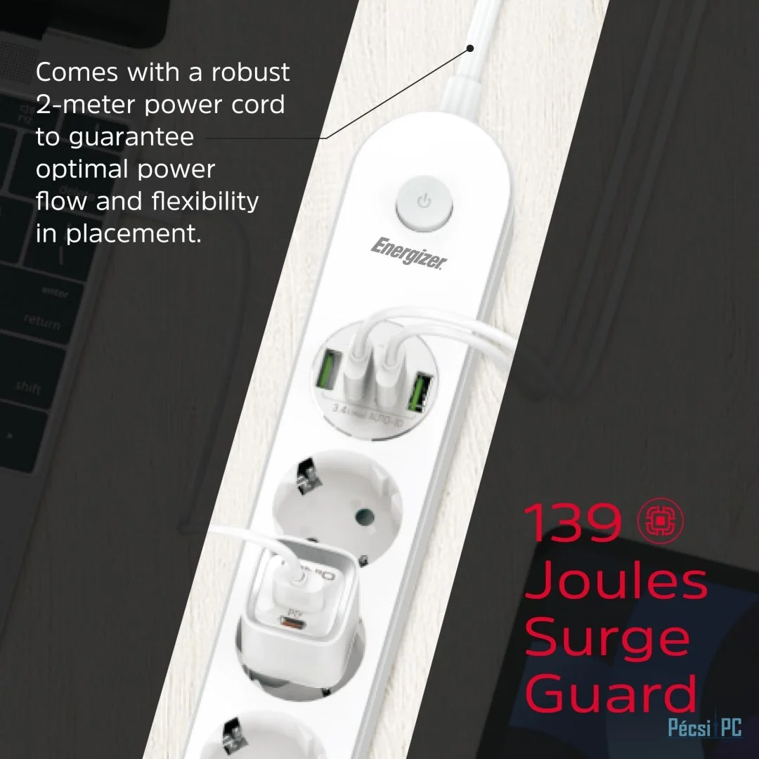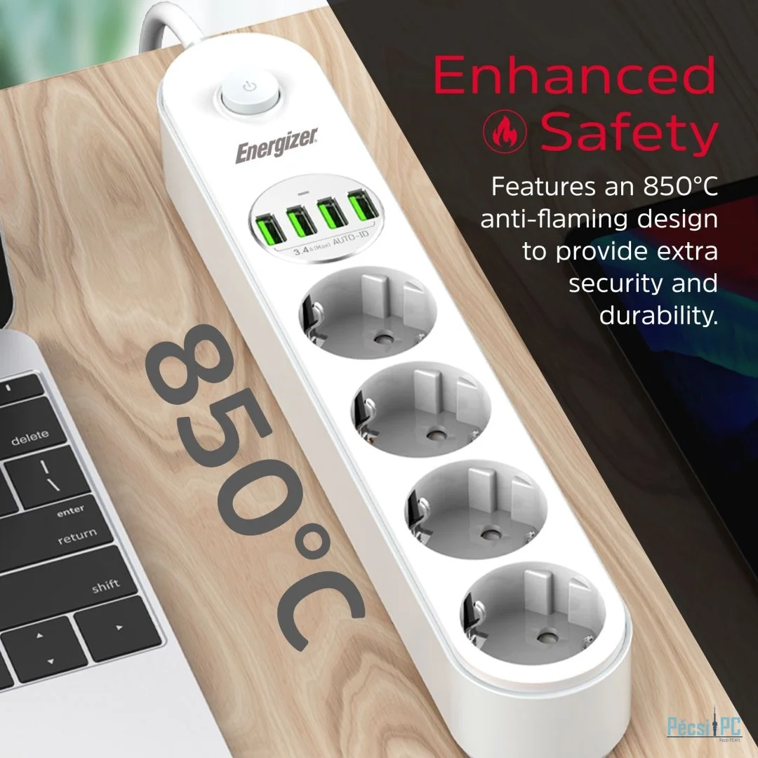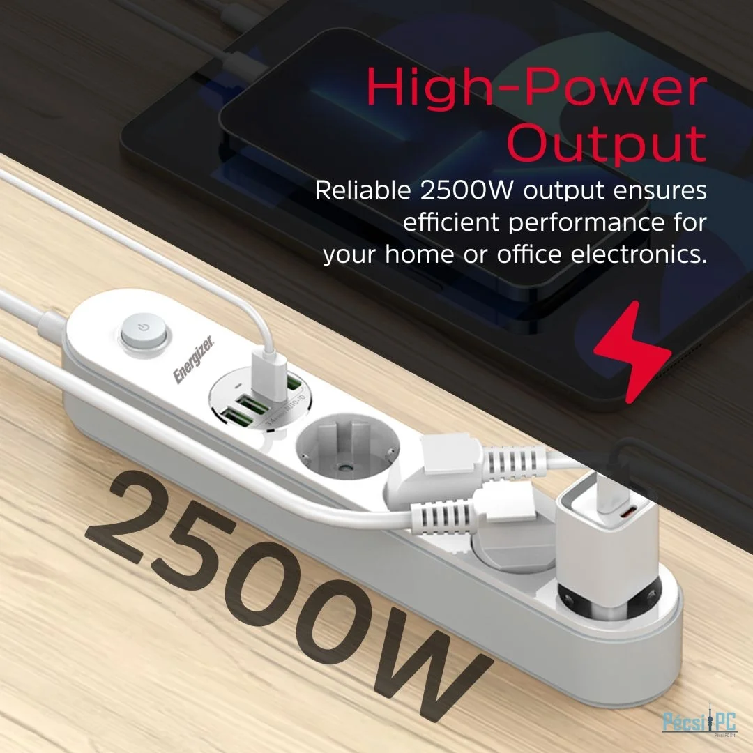 Energizer EPB2500W00EU Hálózati Elosztó Kapcsolóval 4DIN 2m White