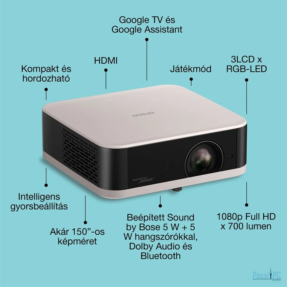 3LCD, 1920x1080, 700ANSI Lumen, 500000:1, 199x190x75mm, 3,69kg, Bluetooth, WiFi