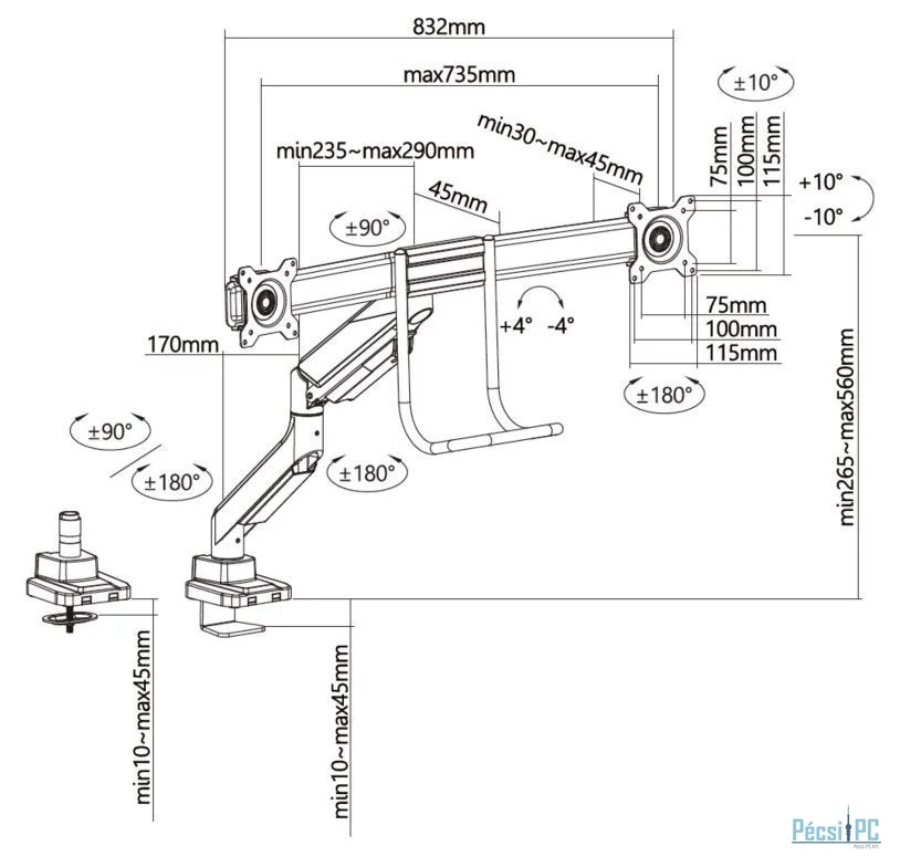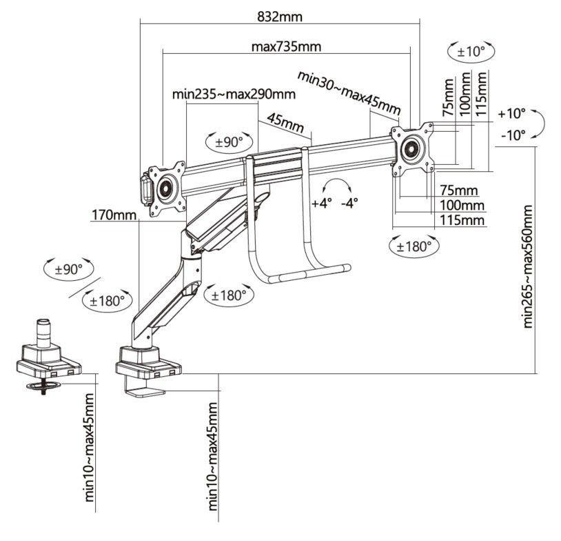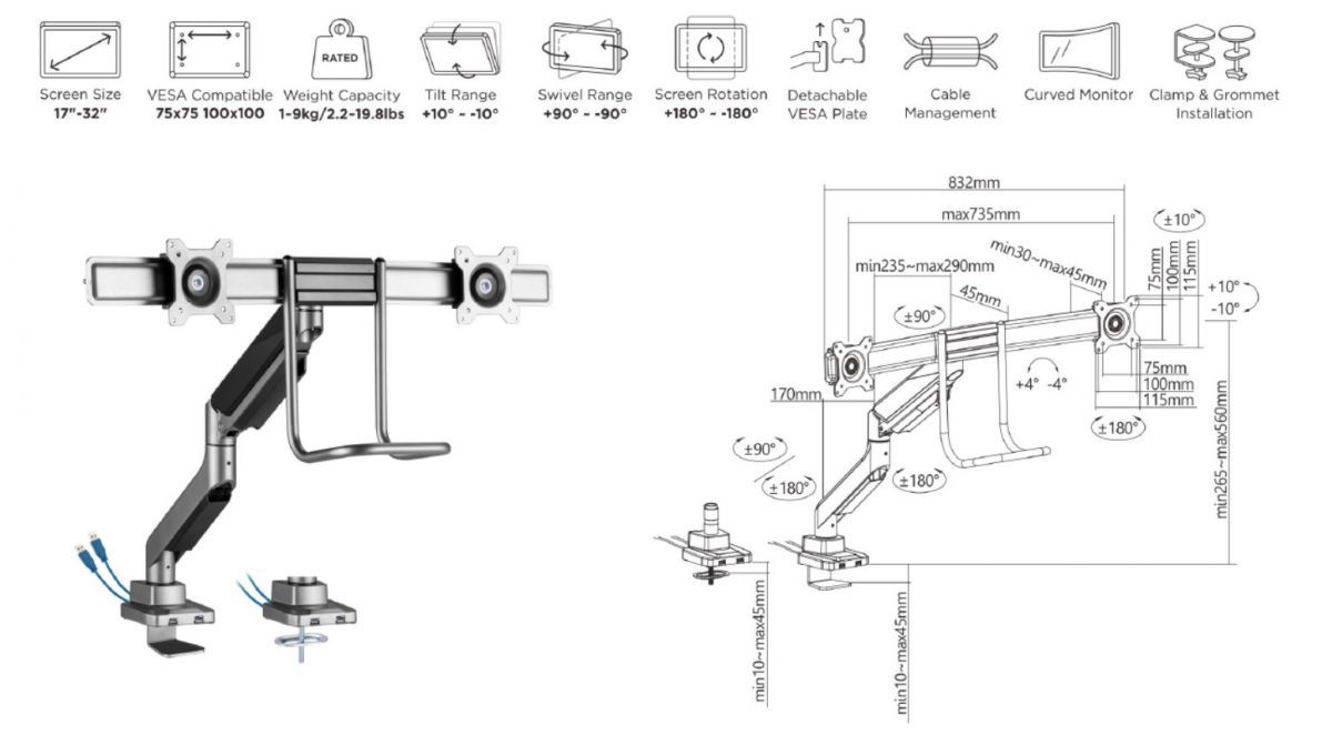 EQuip 17"-32" Dual Monitor Desk Mount Bracket Black