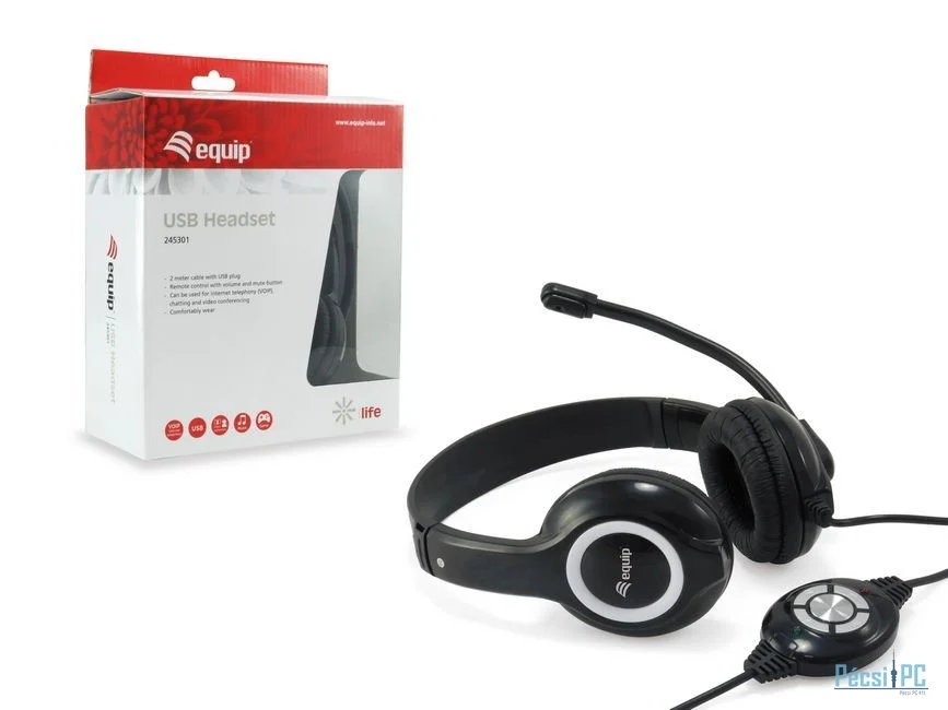 Headset, 2.0, USB, Kábel:2m, 32Ohm, 20Hz-20kHz, Mikrofon, Black