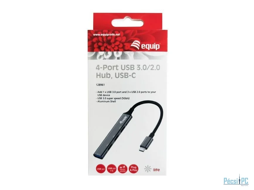 EQuip 4-Port USB 3.0/2.0 Hub USB-C Grey