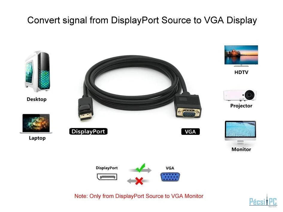 Videó kábel, DisplayPort, VGA, FullHD, Male/Male, 2m, Black