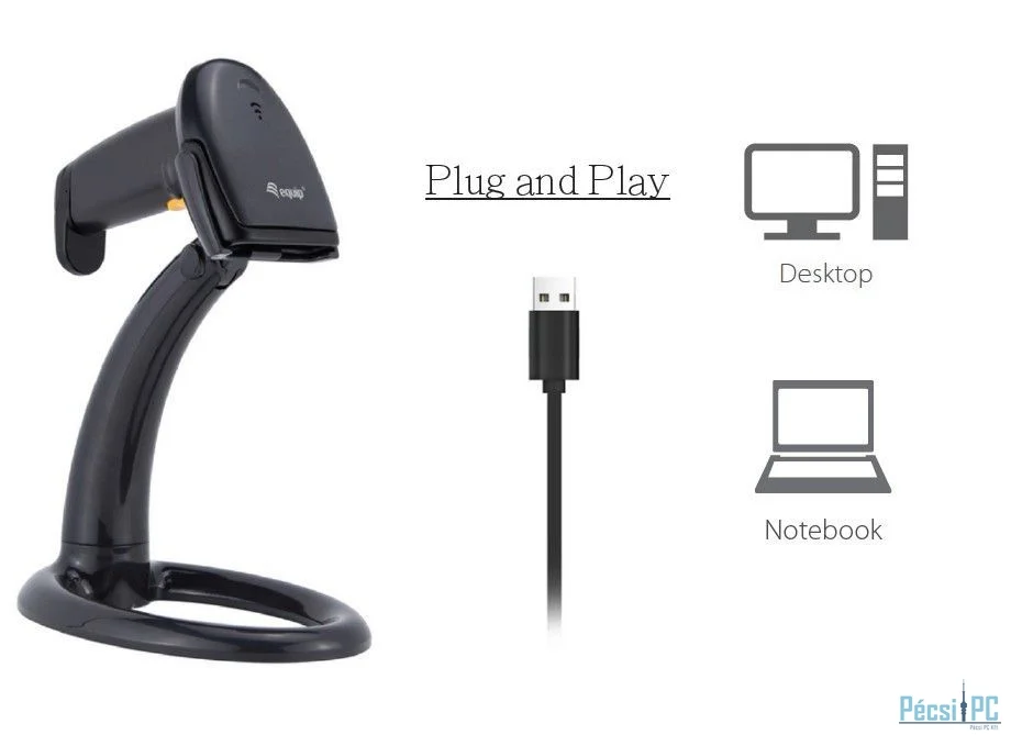 Tartalmazza a kéz nélküli állványt: Megkönnyíti a kéz nélküli működést a nagy volumenű feladatokhoz.Az Equip USB 1D vonalkódolvasó állvánnyal praktikus és hatékony eszköz a vonalkódos információk beolvasásához és kezeléséhez. Ezt a készüléket számos alkalmazáshoz tervezték, például kiskereskedelmi, leltárkezelési és értékesítési pontrendszerekhez. A mellékelt állványnak köszönhetően kéz nélkül használható, csökkentve a felhasználó fáradtságát és növelve a termelékenységet.