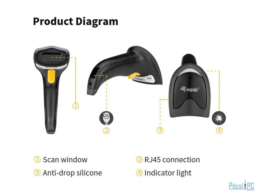 2D CMOS IMAGE vonalkódolvasó.Nagy felbontású képalkotás: Éles és részletes képeket rögzít a pontos dekódoláshoz.1D és 2D vonalkódok, ( vonalkódok és QR-kód ) pontos beolvasása.Hatékonyan dekódolja a lineáris vonalkódokat a kiskereskedelem és a készletgazdálkodás számára.Tartós konstrukció: Robusztus kialakítás, hogy ellenálljon a napi használatnak és az esetleges leejtéseknek.Védett és vízálló (IP54).Széles beolvasási tartomány: Különböző távolságokból és szögekből olvassa a vonalkódokat.