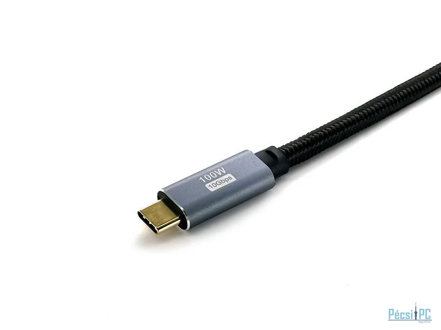USB kábel, USB-C, USB-C, Ultra HD 4K, USB3.2, Male/Male, 2m, Black, Töltő és adatkábel, Szövetborítás