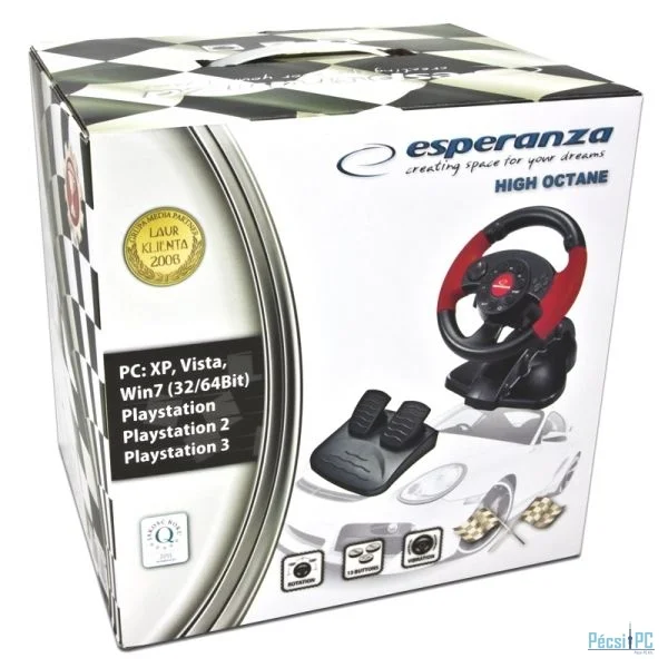 Kormány/pedál szett, PC/PS2/PS3, USB, Kormányváltó, Két pedálos