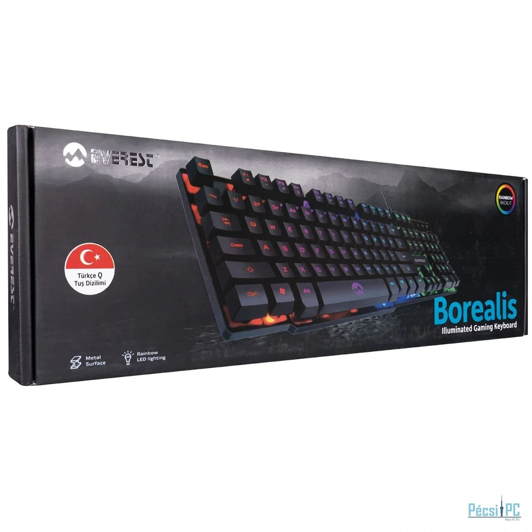 Everest KB-188 Borealis Rainbow RGB Keyboard Black HU