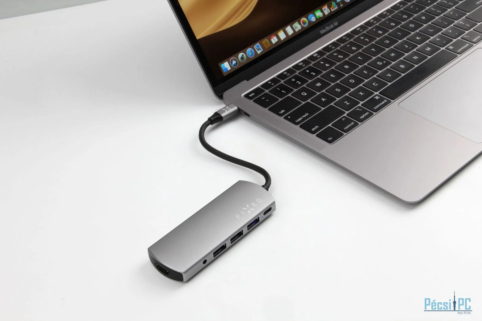 Az alumínium FIXED HUB 6IN1 teljes értékű munkaállomássá alakítja a MacBookot vagy más USB-C csatlakozóval rendelkező laptopot és táblagépet. A csatlakoztatást követően 3 x USB 3.0 port, 1 x HDMI, 1 x USB-C Power Delivery támogatással és 1 x 3,5 mm-es audiocsatlakozó áll rendelkezésedre. Kényelmesen csatlakoztathatsz projektorokat, 4K monitorokat, külső meghajtókat és egyéb kiegészítőket, ugyanakkor az akár 100 W teljesítményű USB-C PD porton keresztül töltheted az eszközeidet. Többé nem kell választania a laptop töltése vagy a külső tartozékok csatlakoztatása között. A Space Gray színű, tartós alumínium hubtest tökéletesen illik a modern Apple MacBookokhoz, és ellenállóbb a karcolásokkal szemben, mint a műanyag hubok. A táskában vagy hátizsákban való egyszerű szállításhoz egy praktikus hordtáskát is talál a csomagban. A kompakt és megbízható FIXED HUB 6IN1 tökéletes kiegészítő az utazáshoz és az irodába.