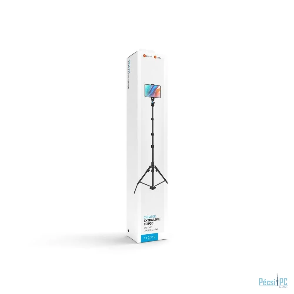 A FIXED Creator állvány ideális választás minden olyan tartalomkészítő számára, aki megbízható partnert keres a fényképezéshez vagy videók készítéséhez. Az univerzális 1/4"-os menet segítségével könnyedén rögzíthető fényképezőgép, akciókamera vagy LED-lámpa, míg a csúszó bilincsekkel ellátott tartóra könnyedén fel lehet szerelni akár 13"-os telefonokat és táblagépeket is. A négyrészes állványszerkezet akár 190 cm magasságig is beállítható, a kiválasztott pozíciót pedig egy praktikus meghúzási mechanizmussal lehet biztonságosan rögzíteni. A pontos szögbeállításhoz forgócsuklót használnak, amelynek köszönhetően a készülék vízszintesen és függőlegesen is pozícionálható. Az állványlábak egyetlen földre csapással kibonthatók, ami gyors és kényelmes használatra való előkészítést biztosít. A tartós alumíniumötvözet akár 5 kg-os terhelést is kibír, összecsukott állapotban pedig az állvány kompakt 56 cm-es. A csomag tartalmaz egy praktikus hordtáskát is a könnyű szállításhoz, amelynek köszönhetően az állvány mindig kéznél lehet.