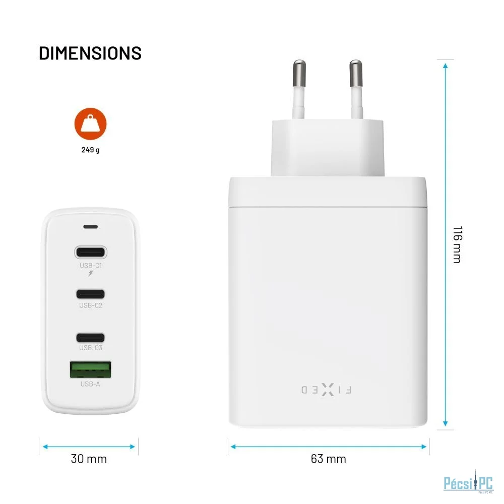 A nagy teljesítményű, mégis kompakt FIXED hálózati adapter ideális minden eszköz univerzális töltésére, akár 120 W összteljesítménnyel. A fejlett GaN technológiának köszönhetően gyors töltést biztosít túlmelegedés nélkül, így növeli a hatékonyságot. Ugyanakkor lehetővé teszi a méretek kompakt méretűre csökkentését a hasonló teljesítményű hagyományos töltőkhöz képest. Négy porttal rendelkezik - három USB-C és egy USB-A porttal, amelyekkel egyszerre akár négy készüléket is tölthetsz. A fő USB-C1 port támogatja a Power Delivery 3.0-t, és nagy, akár 100 W-os teljesítményt nyújt, ami biztosítja a nagy teljesítményű laptopok és más energiaigényes eszközök megbízható és gyors töltését. Akár otthon, akár az irodában vagy útközben, a FIXED GaN 120 W megbízható és gyors töltést biztosít minden eszközének egyetlen kompakt adapterrel.