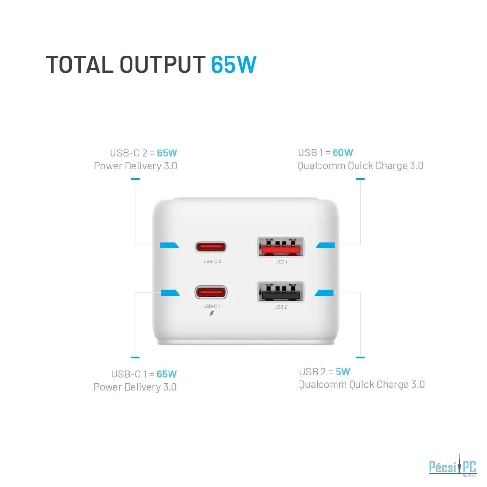 -USB-C1/C2 kimenet: 5V/3A, 9V/3A, 12V/3A, 15V/3A, 20V/3.25A max. 65W