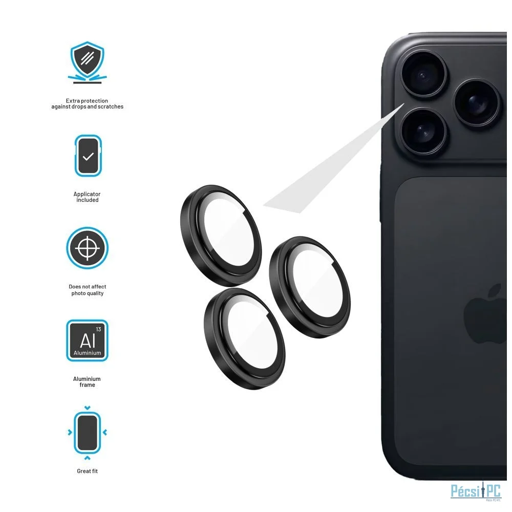 - alumínium keret enyhén megemelt élekkel a nagyobb lencsevédelem érdekében