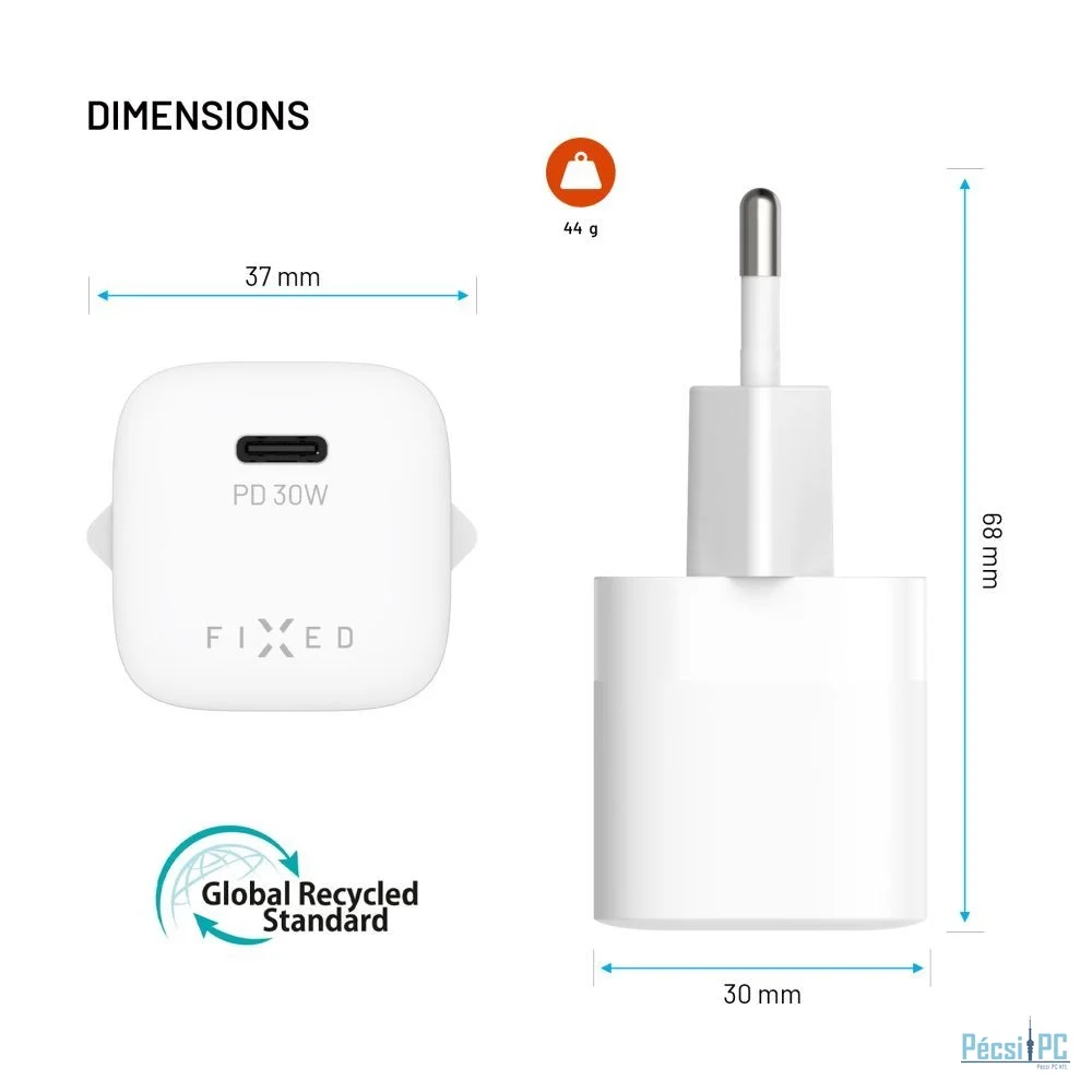 A miniatűr FIXED hálózati töltő 30 W-os teljesítményével és a Power Delivery 3.0 támogatásával gyorsan és megbízhatóan tölti telefonját, táblagépét és más eszközeit. Az adapter egyedülálló GaN technológiával van felszerelve, amely lehetővé teszi a töltő méretének csökkentését, miközben biztonságosan és hatékonyan fenntartja a nagy teljesítményt és a gyors töltést túlmelegedés nélkül. Rendkívül kompakt kialakításának köszönhetően a töltőt könnyedén csatlakoztathatja nehezen hozzáférhető helyeken, vagy elrejtheti zsebében vagy táskájában. Minimalista méretei ellenére teljes teljesítményt nyújt, és a túlmelegedés, túlfeszültség és rövidzárlat elleni beépített védelemnek köszönhetően biztonságos töltést biztosít. A környezetvédelem jegyében a töltő GRS tanúsítvánnyal rendelkező, újrahasznosított anyagokból készült, és a fenntarthatóság elveinek megfelelően tervezték. A FIXED töltőadapternek köszönhetően többé nem kell aggódnia amiatt, hogy kifogy az áram - akár otthon, akár az irodában, akár útközben.
