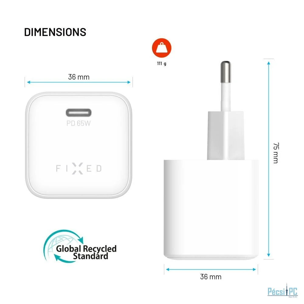 A 65 W teljesítményű és az USB-C porton keresztül Power Delivery 3.0-t támogató FIXED miniatűr hálózati töltő gyorsan és megbízhatóan tölti fel az összes eszközét - a mobiltelefontól a MacBookig. Az adapter egyedülálló GaN technológiával van felszerelve, amely lehetővé teszi a töltő méretének csökkentését, miközben biztonságosan és hatékonyan fenntartja a nagy teljesítményt és a gyors töltést túlmelegedés nélkül. Rendkívül kompakt kialakításának köszönhetően a töltőt könnyedén csatlakoztathatja nehezen hozzáférhető helyeken, vagy elrejtheti zsebében vagy táskájában. Minimalista méretei ellenére teljes teljesítményt nyújt, és a túlmelegedés, túlfeszültség és rövidzárlat elleni beépített védelemnek köszönhetően biztonságos töltést biztosít. A környezetvédelem jegyében a töltő GRS tanúsítvánnyal rendelkező, újrahasznosított anyagokból készült, és a fenntarthatóság elveinek megfelelően tervezték. A FIXED töltőadapternek köszönhetően többé nem kell aggódnia amiatt, hogy kifogy az áram - akár otthon, akár az irodában, akár útközben.