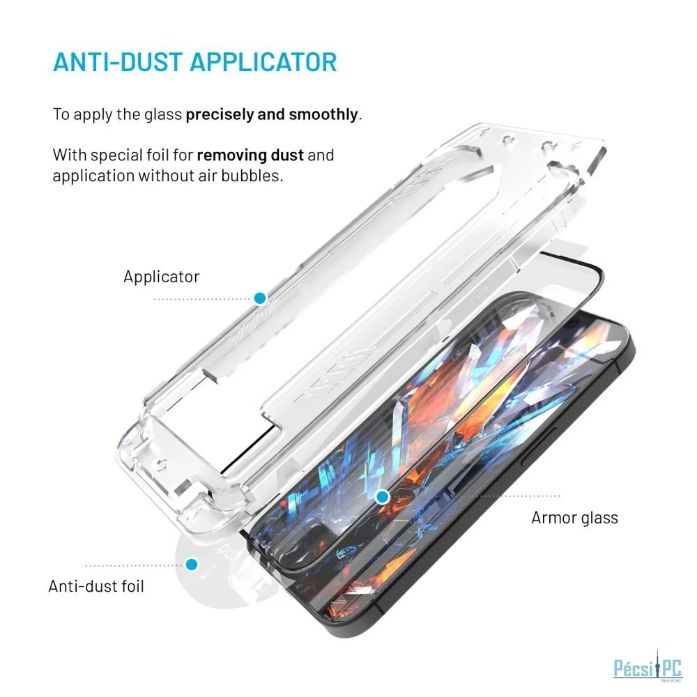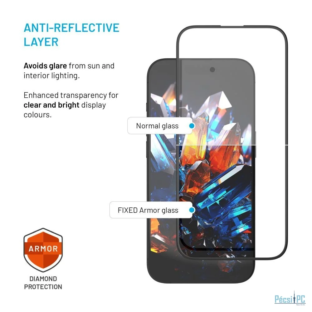 Az ultra-tartós edzett üveg Armor tökéletes, láthatatlan védelmet nyújt a kijelzőnek, ami sokszorosára növeli annak élettartamát és ütésállóságát. Az üveg kiváló minőségű anyagokból készül, ami nagyobb keménységet biztosít a hagyományos védőüvegekhez képest. A megnövelt rugalmasságának köszönhetően hatékonyan elnyeli az ütéseket, ellenáll szinte minden esésnek, karcolásnak, és minimálisra csökkenti a törés kockázatát. A speciális tükröződésgátló bevonat javítja a kijelző olvashatóságát, kiküszöböli a nap és a mesterséges fény tükröződését, míg a továbbfejlesztett oleofób réteg biztosítja az ujjak sima mozgását a kijelzőn, ujjlenyomatok hagyása nélkül. Pontos felvitele bárki számára könnyen elvégezhető az egyedülálló porvédő fóliával ellátott applikátor segítségével, amely eltávolítja a port és egyéb szennyeződéseket, és megakadályozza a légbuborékok kialakulását. Az Armor üveg rendkívüli tartósságát és egyéb tulajdonságait a FIXED alaposan tesztelte.