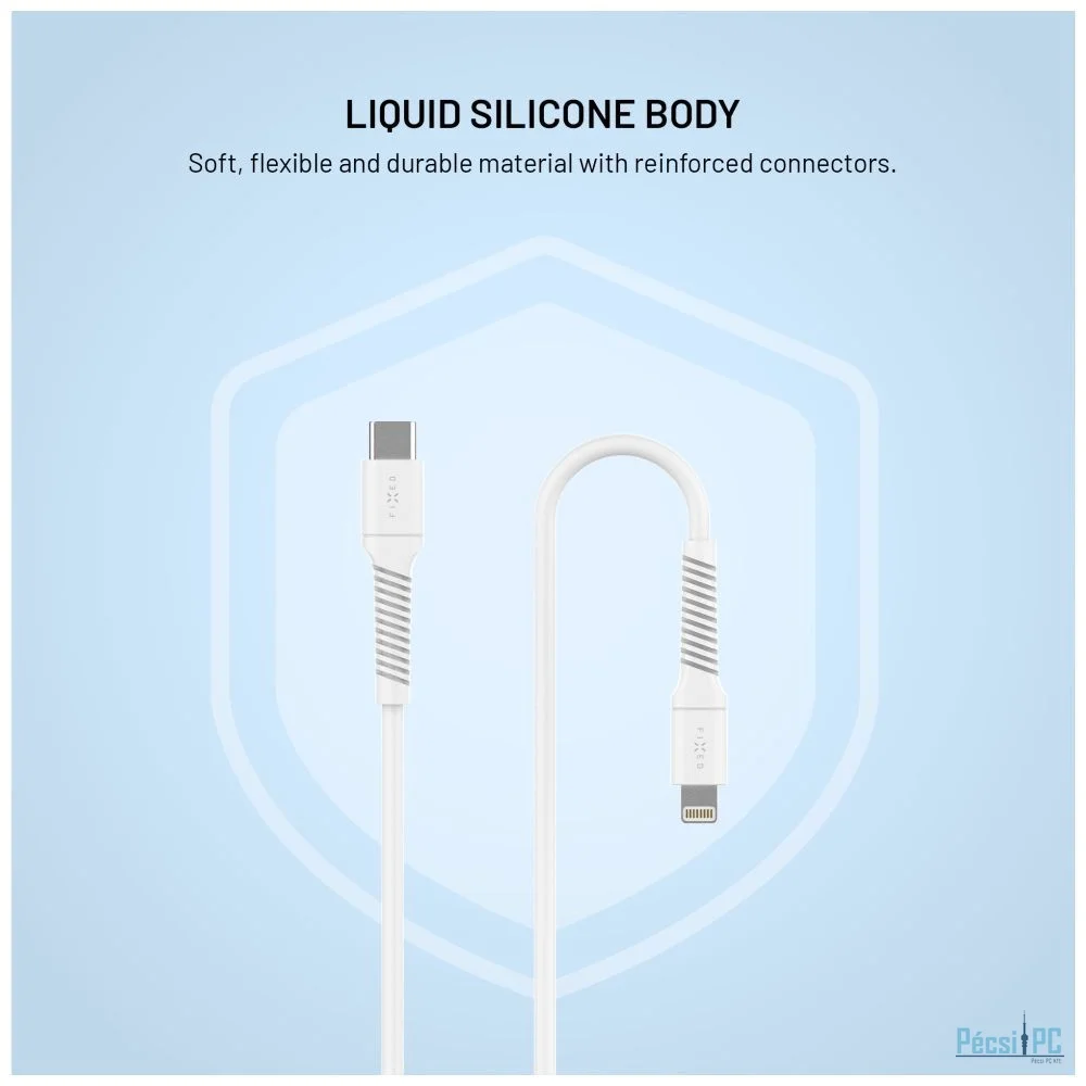 A FIXED Liquid Silicone adat- és töltőkábel USB-C és Lightning csatlakozóval megbízható tartozék az Apple készülékéhez. Lightning csatlakozóval rendelkező iPhone vagy iPad készüléked töltésére szolgál maximális sebességgel és teljesítménnyel, miközben a zene, a fényképek és az összes adat 480 Mbps sebességgel történő átvitelét is kezeli. A kábel burkolata speciális Liquid Silicone anyagból készült, amely rugalmas, kopásálló, kellemes tapintású és nem gubancolódik. A csatlakozóvégek megerősített bordázattal is fel vannak szerelve, amely megvédi a kábelt a megterhelt helyeken történő töréstől, lehetővé teszi a gyakori hajlítást, és jelentősen meghosszabbítja a kábel élettartamát. A csomag tartalmaz egy praktikus kábelkötegelőt a kábel könnyű, összegabalyodás nélküli szállítására.