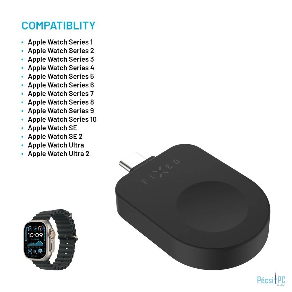FIXED USB-C töltőadapter Apple Watch-hoz, Powerstation Uni készülékkel kompatibilis, fekete