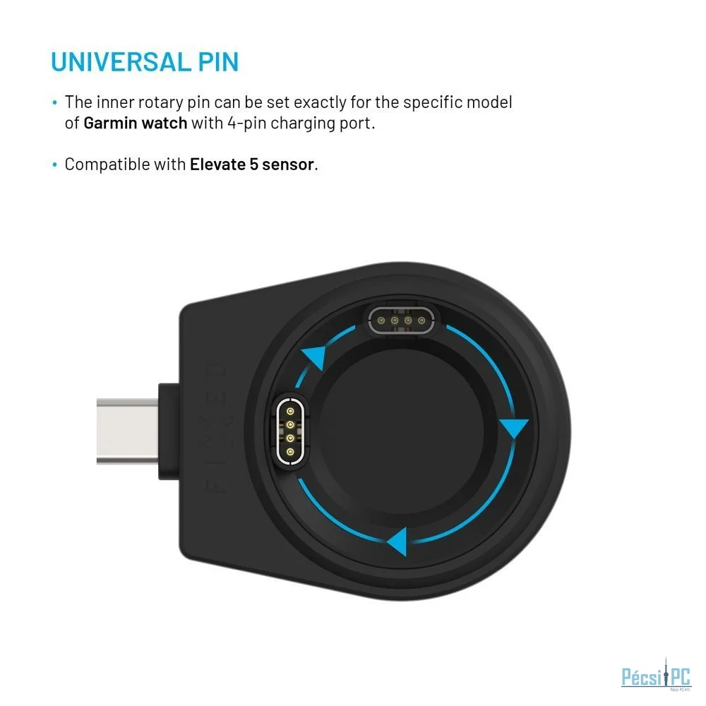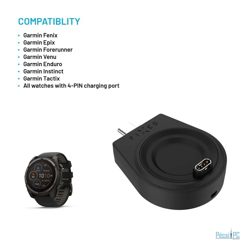 FIXED USB-C töltőadapter Garmin Fenix 5/6/7/7X/8, Epix, Venu 2/3/3S, Vívoactive 3/4/5 készülékekhez, fekete