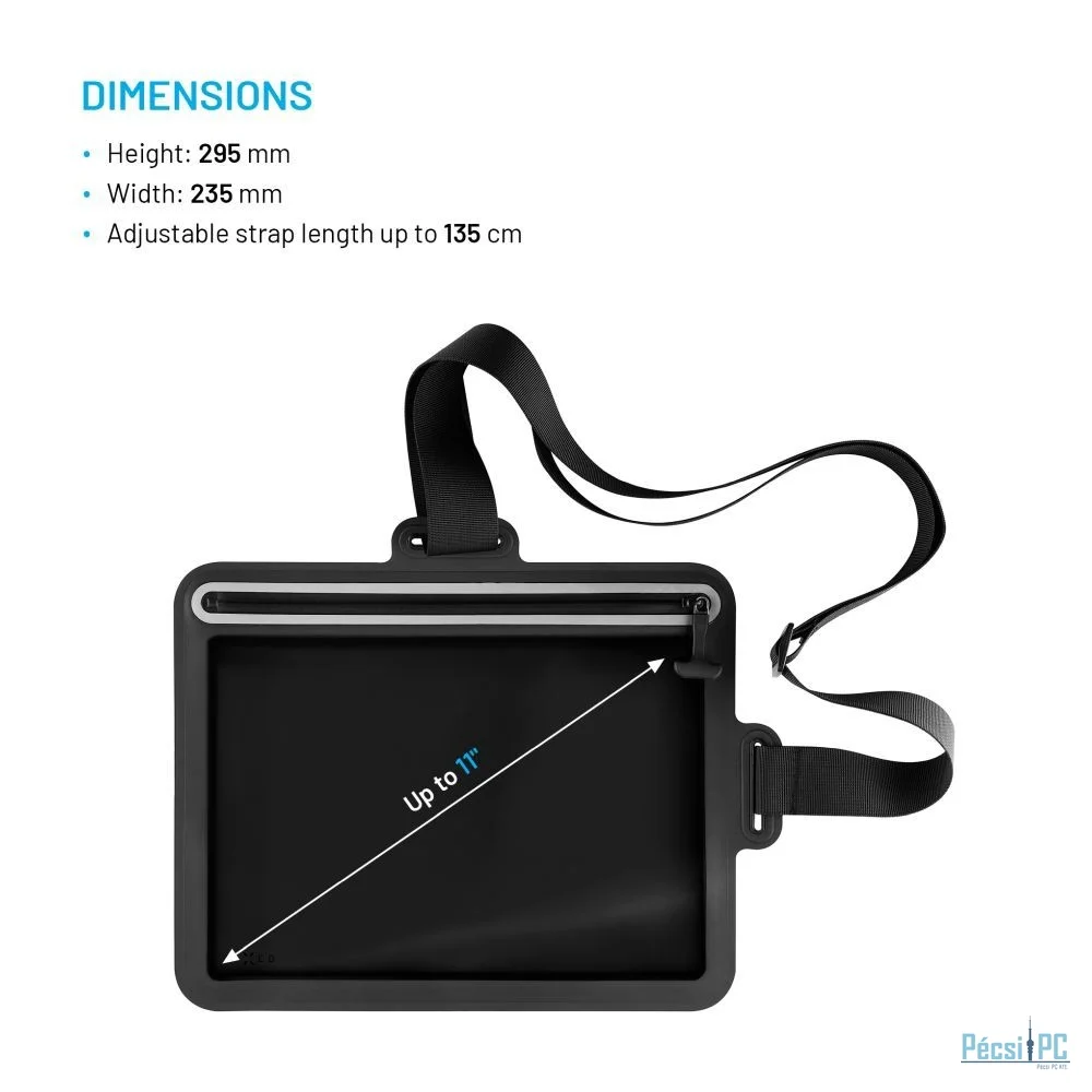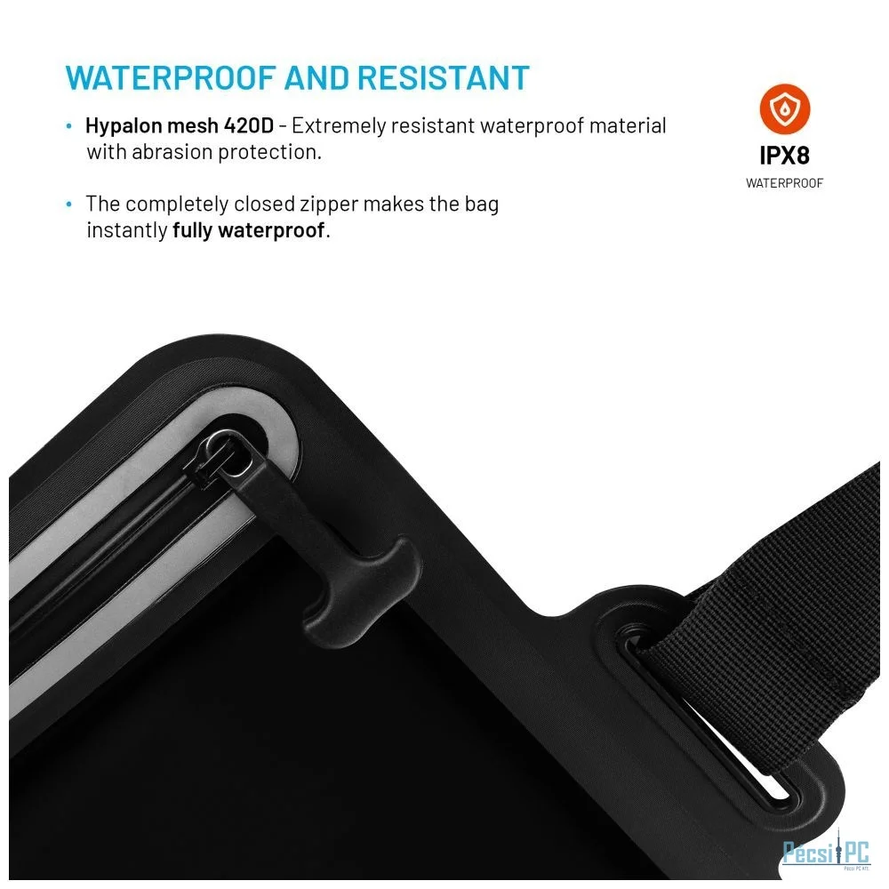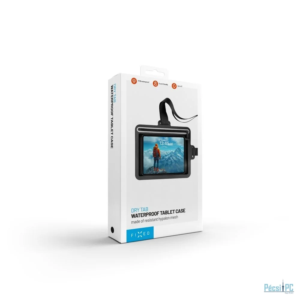 A vízálló FIXED Dry Tab tok megbízhatóan megvédi táblagépét a nedvességtől, homoktól és szennyeződésektől, akár útközben, a természetben vagy a víz közelében tartózkodik. Legfeljebb 11" méretű táblagépekhez készült, és az átlátszó érintős oldalnak köszönhetően kényelmesen vezérelheti a készüléket közvetlenül a tokban. A felhasznált Hypalon hálós 420D anyag rendkívül ellenálló a vízzel, a kopással és a szakadással szemben, így a tok élettartama még erős igénybevétel esetén is meghosszabbodik. A biztonságos zárást vízálló cipzár biztosítja, amelyet csak szorosan meg kell húzni, és a tok azonnal lezárul. Az IPX8 minősítésnek köszönhetően a tartalom 5 méteres mélységig, egy órán keresztül biztonságban marad. Az állítható, akár 135 cm hosszúságú pántot az Ön igényei szerint állíthatja be a kényelmes viselet érdekében.