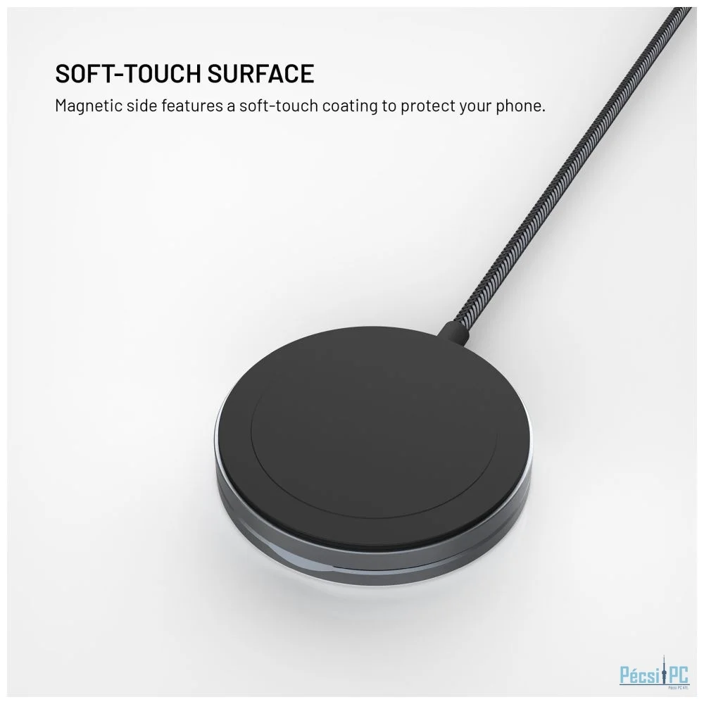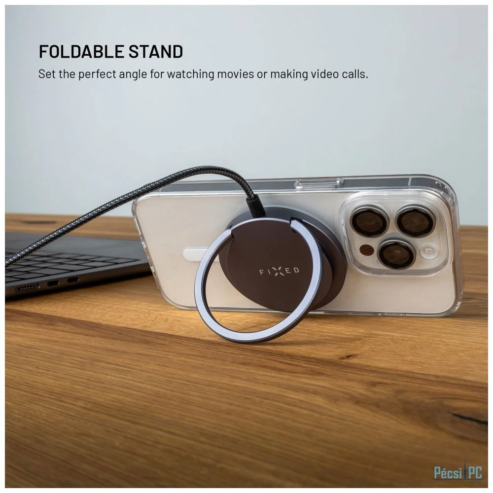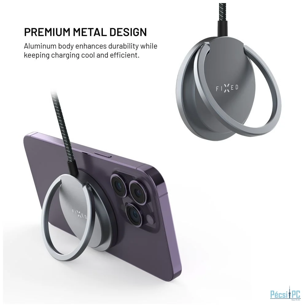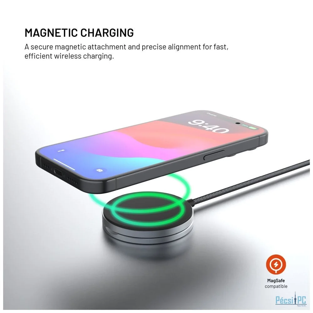 A FIXED MagPad Pro vezeték nélküli töltő Qi2 tanúsított technológiával és MagSafe támogatással biztosítja telefonja gyors és hatékony töltését. Akár 15 W-os teljesítményével kétszer olyan gyorsan tölti az iPhone-okat, mint a 7,5 W-os határértékkel rendelkező hagyományos vezeték nélküli töltők. Teljes mértékben kompatibilis a 12-es sorozatú és újabb iPhone-okkal, valamint más Qi2-kompatibilis eszközökkel. A beépített mágneseknek köszönhetően automatikusan csatlakozik a telefonhoz, pontosan központosítja magát, és nem zavarja a kamera területét. Vékony és könnyű kialakításának köszönhetően töltés közben is kényelmesen használhatod a telefonodat, a praktikus, összecsukható fémállvány pedig ezután ideális szöget biztosít a videohívásokhoz, videók nézéséhez vagy asztali óra üzemmódban. A töltő tartós alumíniumból készült, Space Gray színű váza más Apple-termékekhez illeszkedik, míg a puha tapintású töltőfelület megvédi a telefont a karcolásoktól. A töltőt egy 1,2 m hosszú kábel egészíti ki, tartós nejlonfonattal és USB-C csatlakozóval, amelynek alumínium vége a kábel fokozott tartósságát biztosítja.