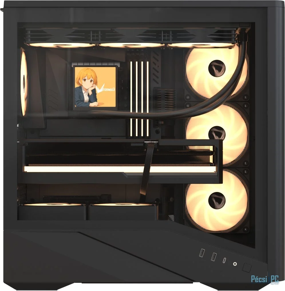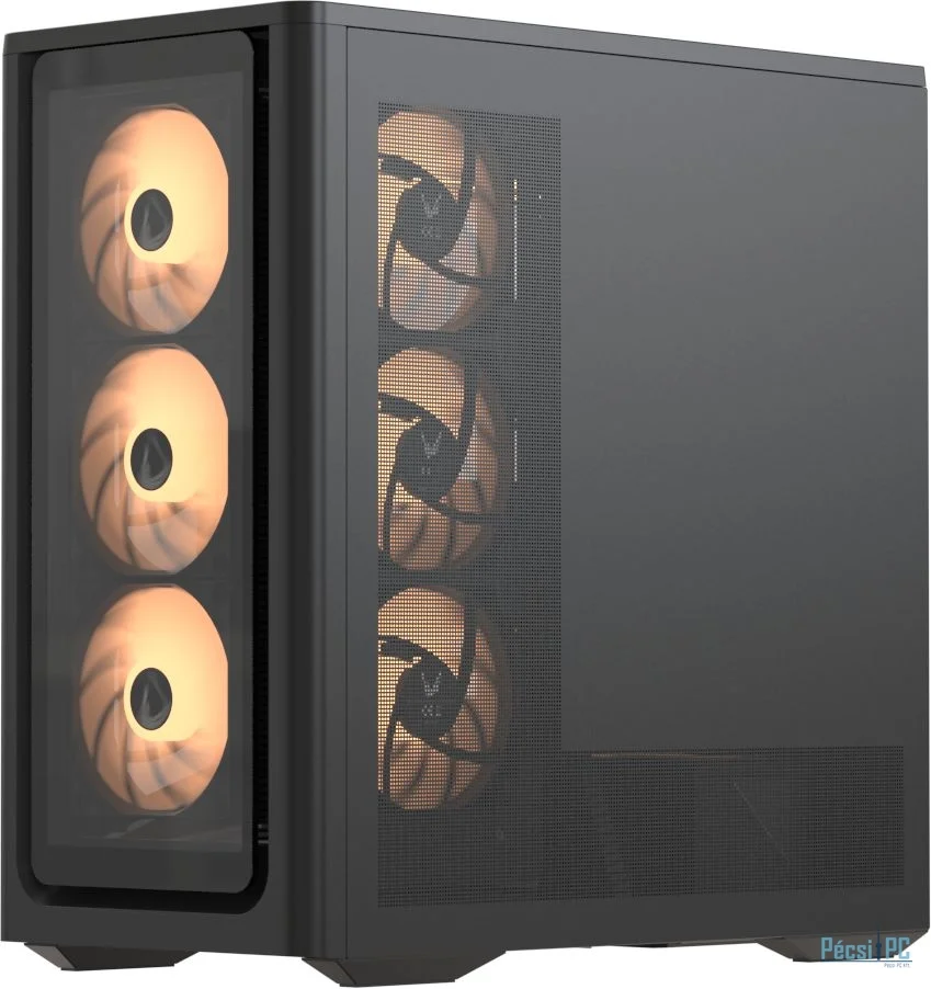 E-ATX, Black, 1x3,5", 1x2,5", 2xUSB3.0, 1xUSB Type-C, Audio, Táp nélkül, 484x480x235mm, Ventilátor:4x12cm, Tempered glass window, RGB, Gamer