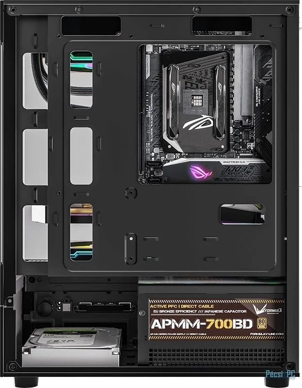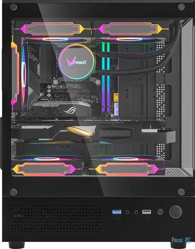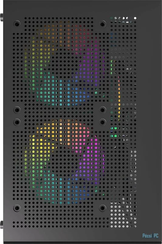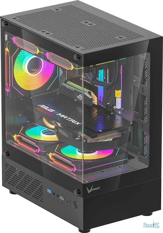 microATX, Black, 1x3,5", 1x2,5", 1xUSB3.0, 1xUSB Type-C, Audio, Táp nélkül, 452x356x242mm, Tempered glass window