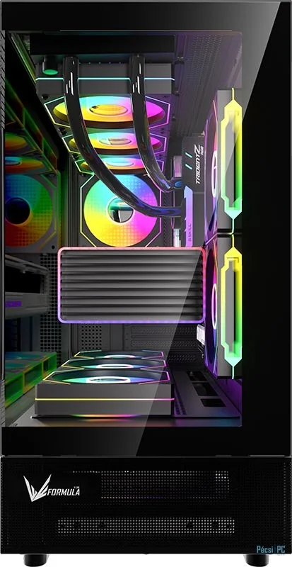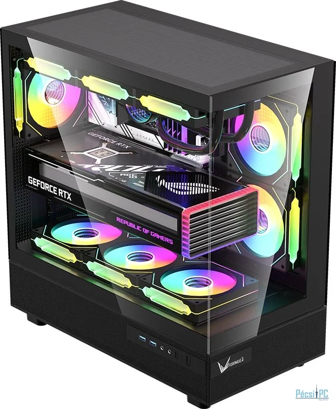 ATX, Black, 2x3,5", 2x2,5", 2xUSB3.0, 1xUSB Type-C, Audio, Táp nélkül, 456x435x230mm, Tempered glass window, Gamer
