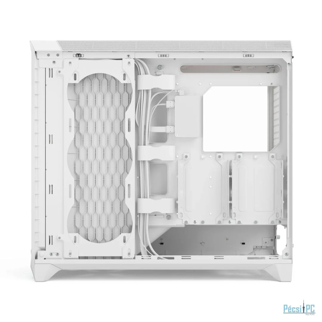 E-ATX, White, 2x3,5", 4x2,5", 2xUSB3.0, 1xUSB Type-C, Audio, Táp nélkül, 575x245x515mm , Ventilátor:3x14cm, Tempered glass window
