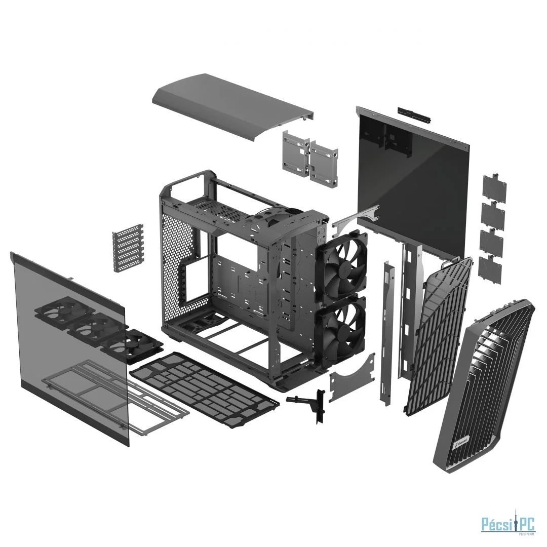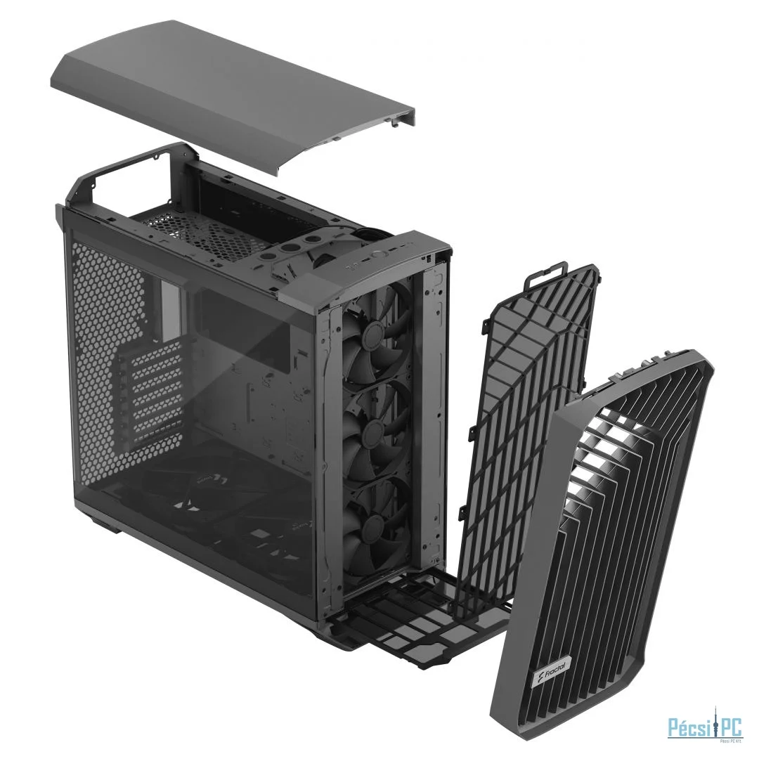 E-ATX, Black, 2x3,5", 4x2,5", 2xUSB3.0, 1xUSB Type-C, Audio, Táp nélkül, 544x242x530mm, Ventilátor:3x14cm, 2x18cm, Tempered glass window