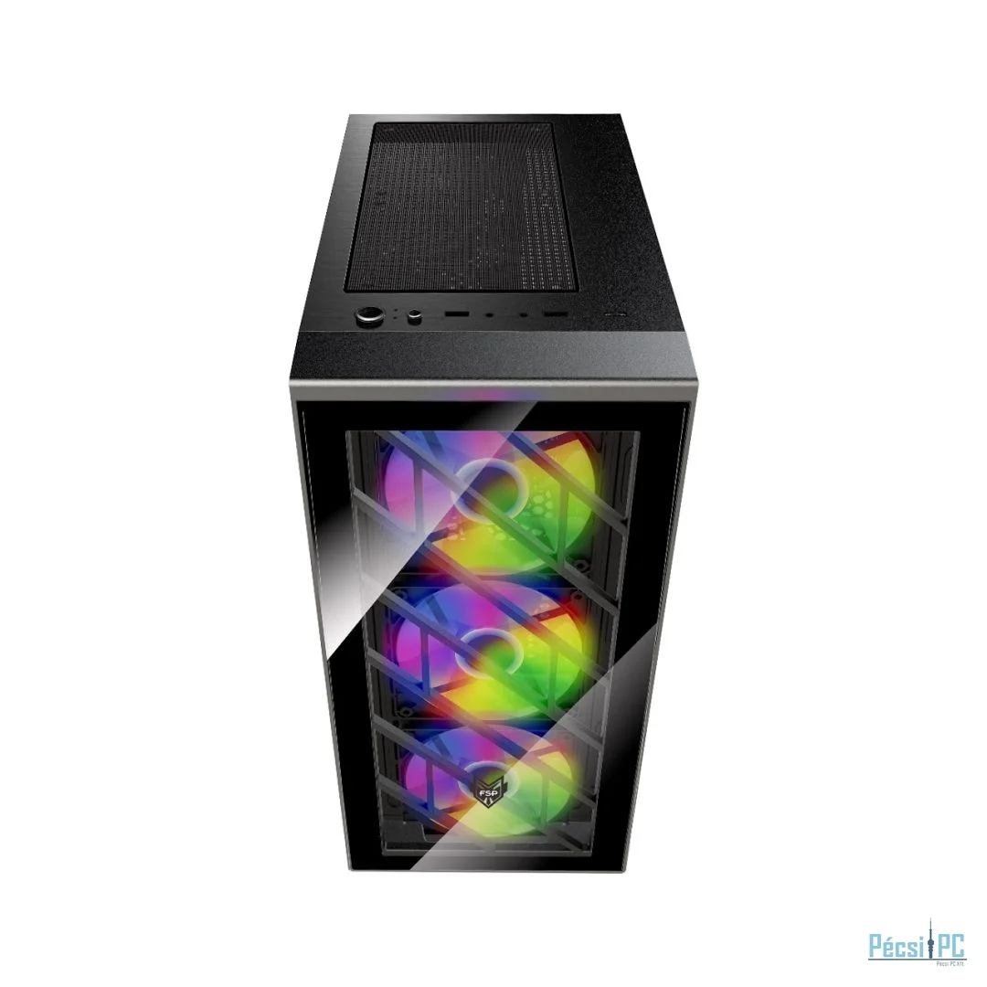 ATX, Black, 2x3,5", 1x2,5", 2xUSB2.0, 1xUSB3.0, Audio, Táp nélkül, 350x200x437mm, Ventilátor:4x12cm, Window, RGB, Gamer