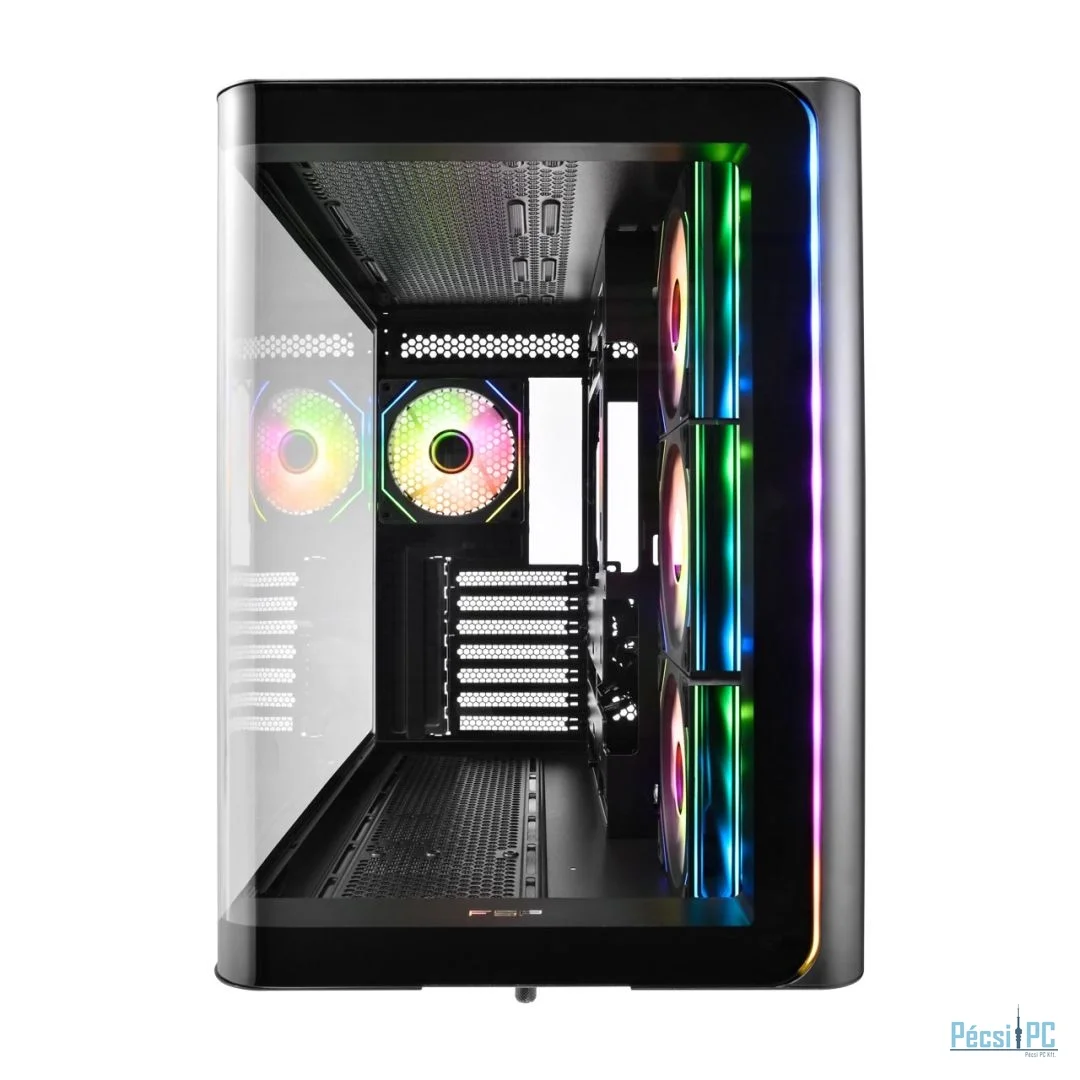 ATX, Black, 2x3,5", 3x2,5", 2xUSB3.0, 1xUSB Type-C, Audio, Táp nélkül, 460x398x285mm, Ventilátor:4x12cm, Tempered glass window, RGB, Gamer