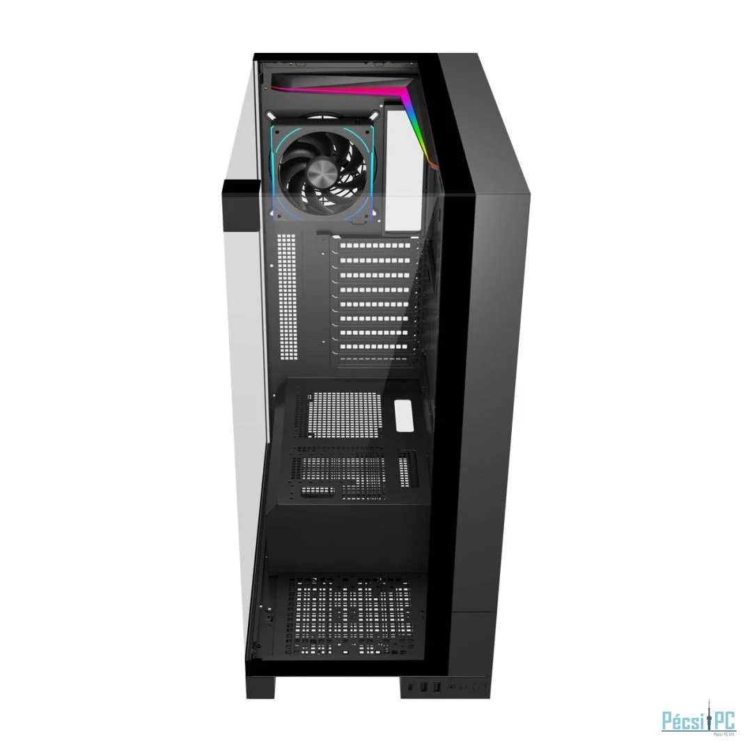 ATX, Black, 3x3,5", 2x2,5", 2xUSB3.0, 1xUSB Type-C, Audio, Táp nélkül, 451x258x568mm, Ventilátor:12cm, Tempered glass window, RGB, Gamer