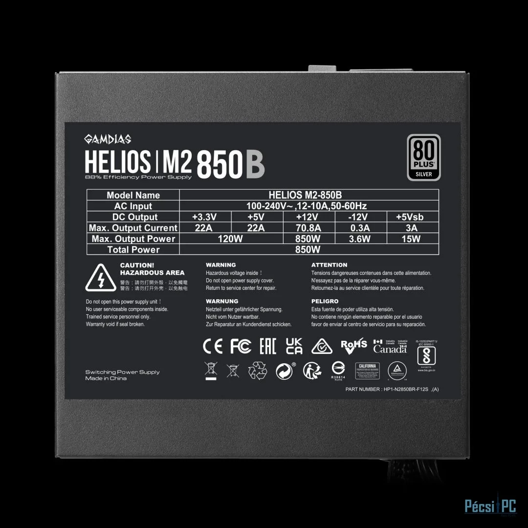 Gamdias 850W 80+ Silver HELIOS M2-850B