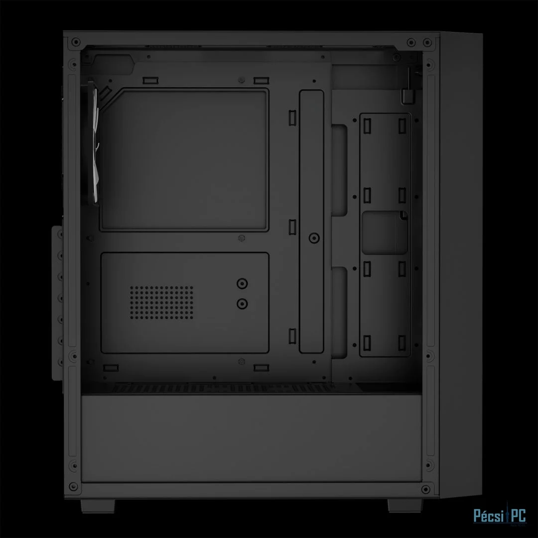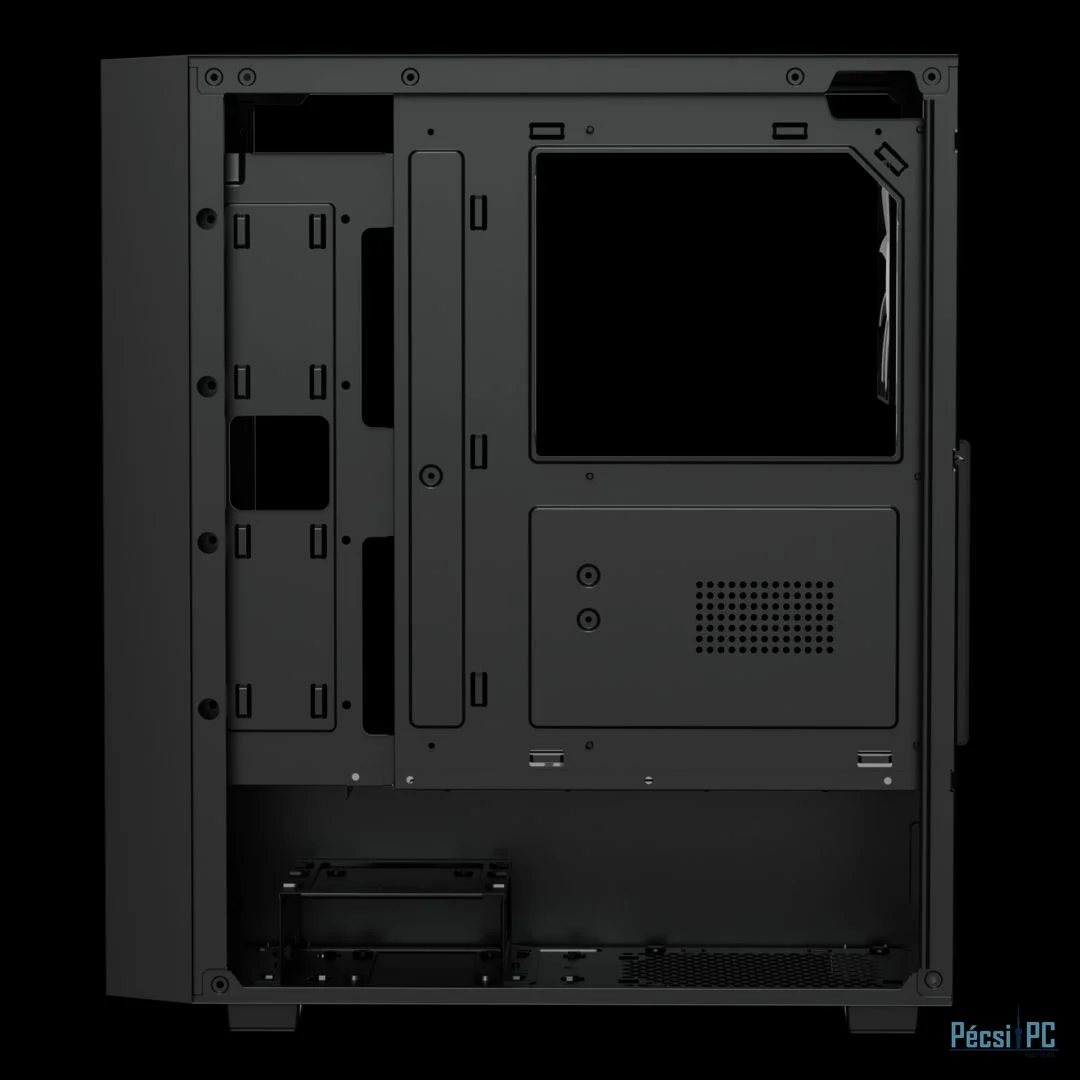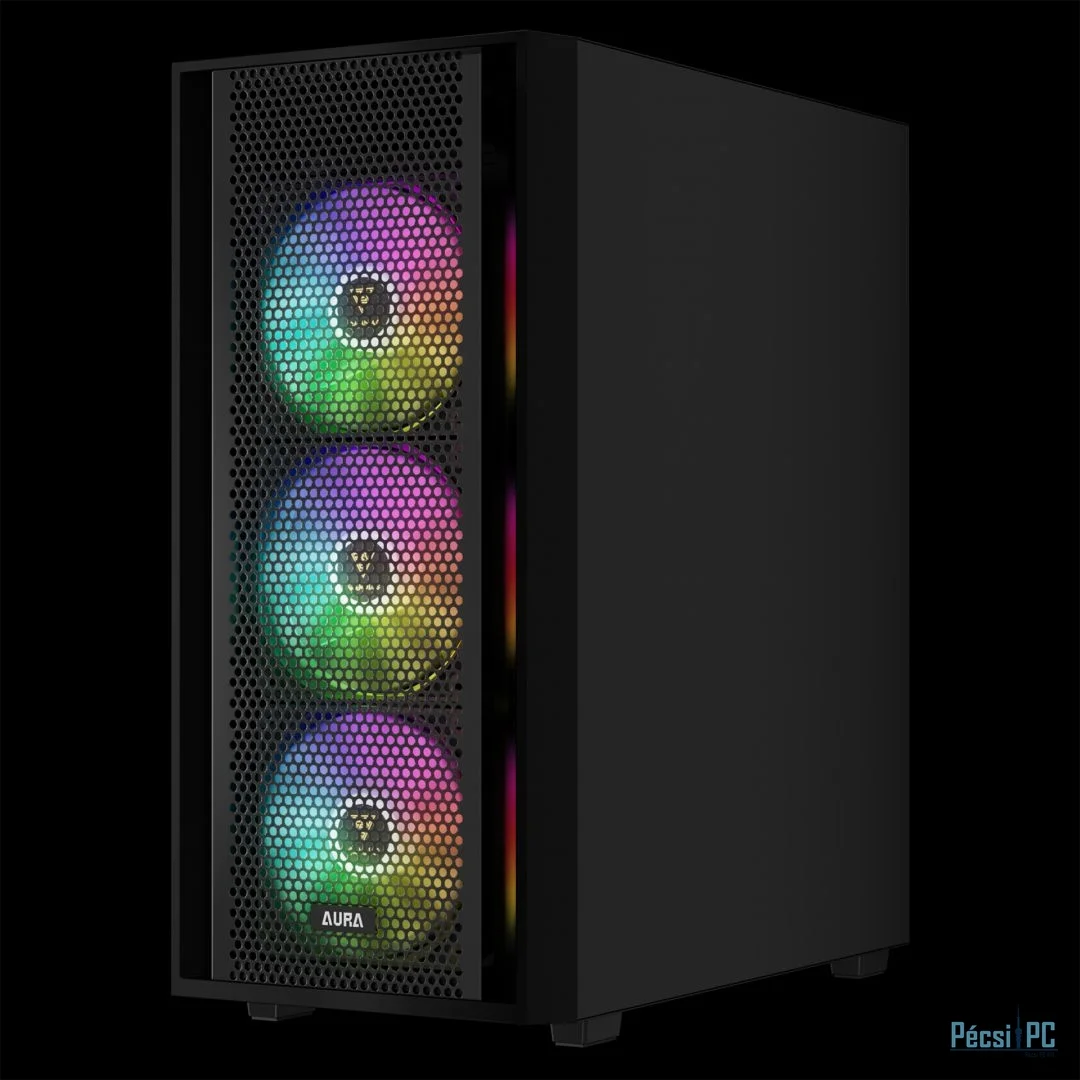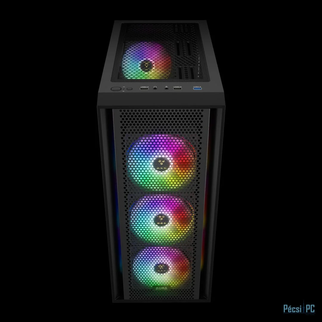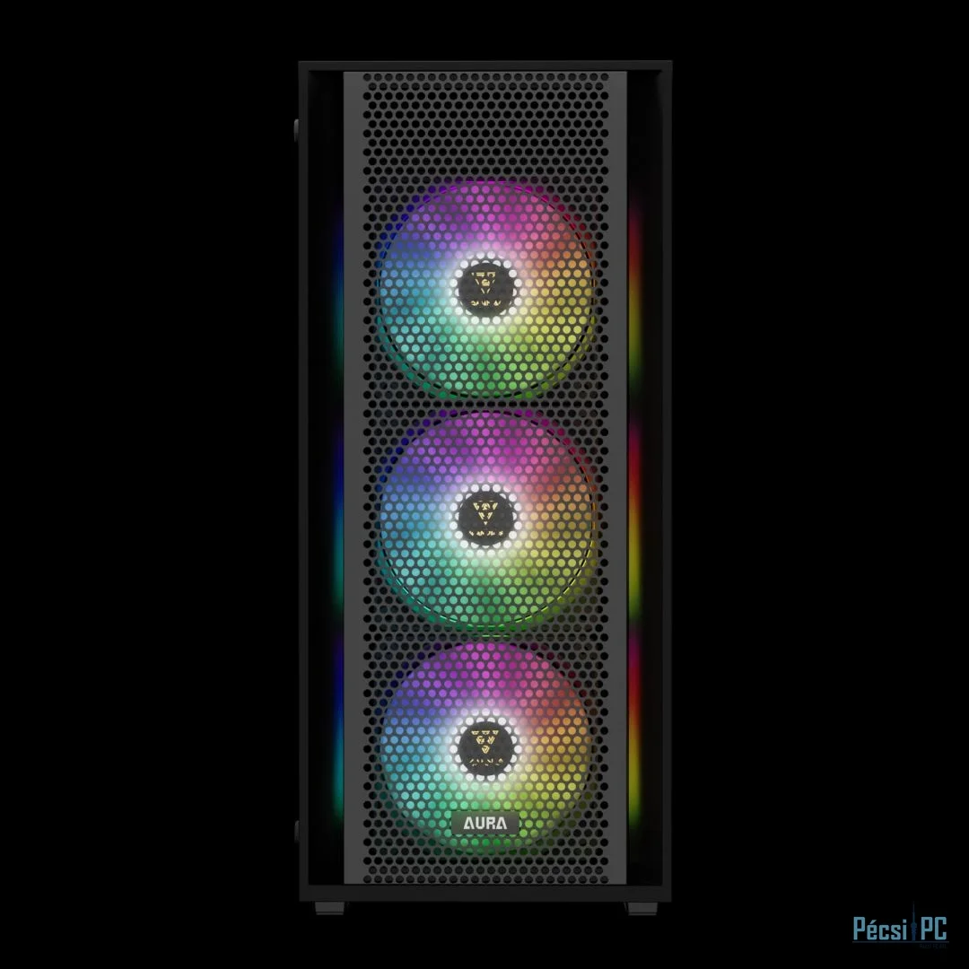 ATX, Black, 2x3,5", 2x2,5", 2xUSB2.0, 1xUSB3.0, Audio, Táp nélkül, 450x395x195mm, Ventilátor:4x12cm, Tempered glass window, RGB, Gamer