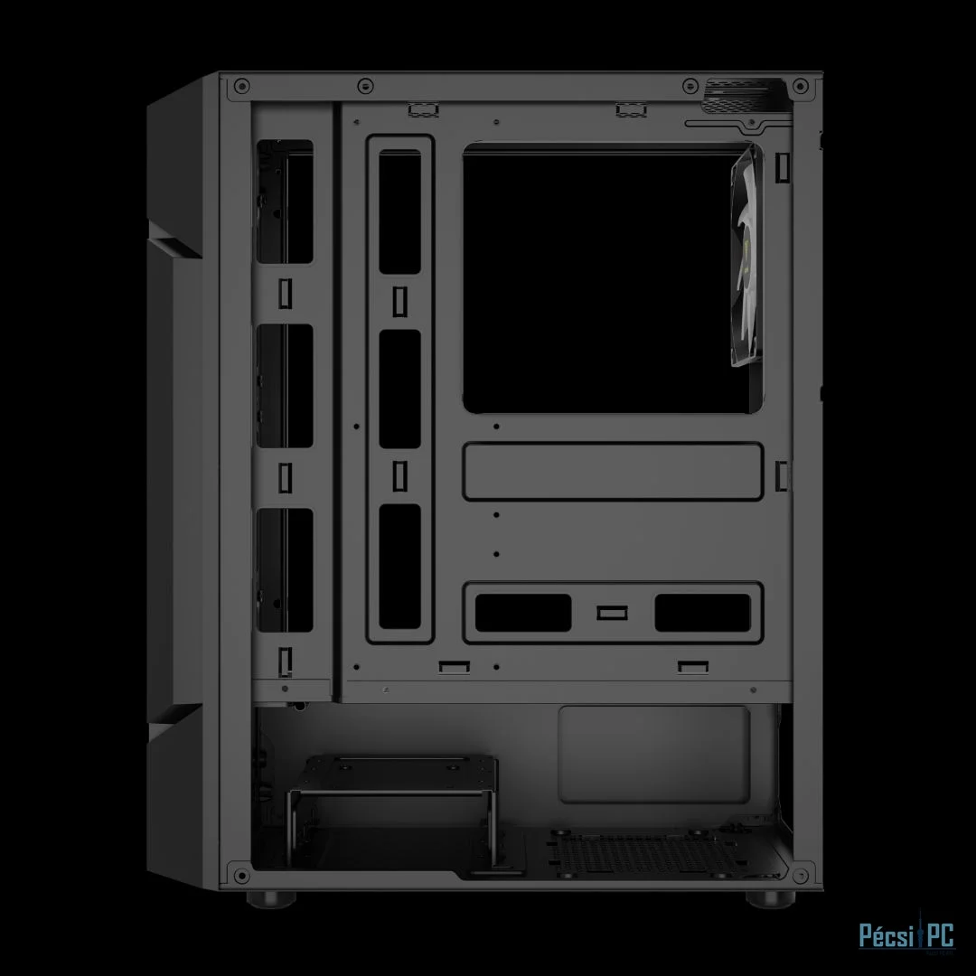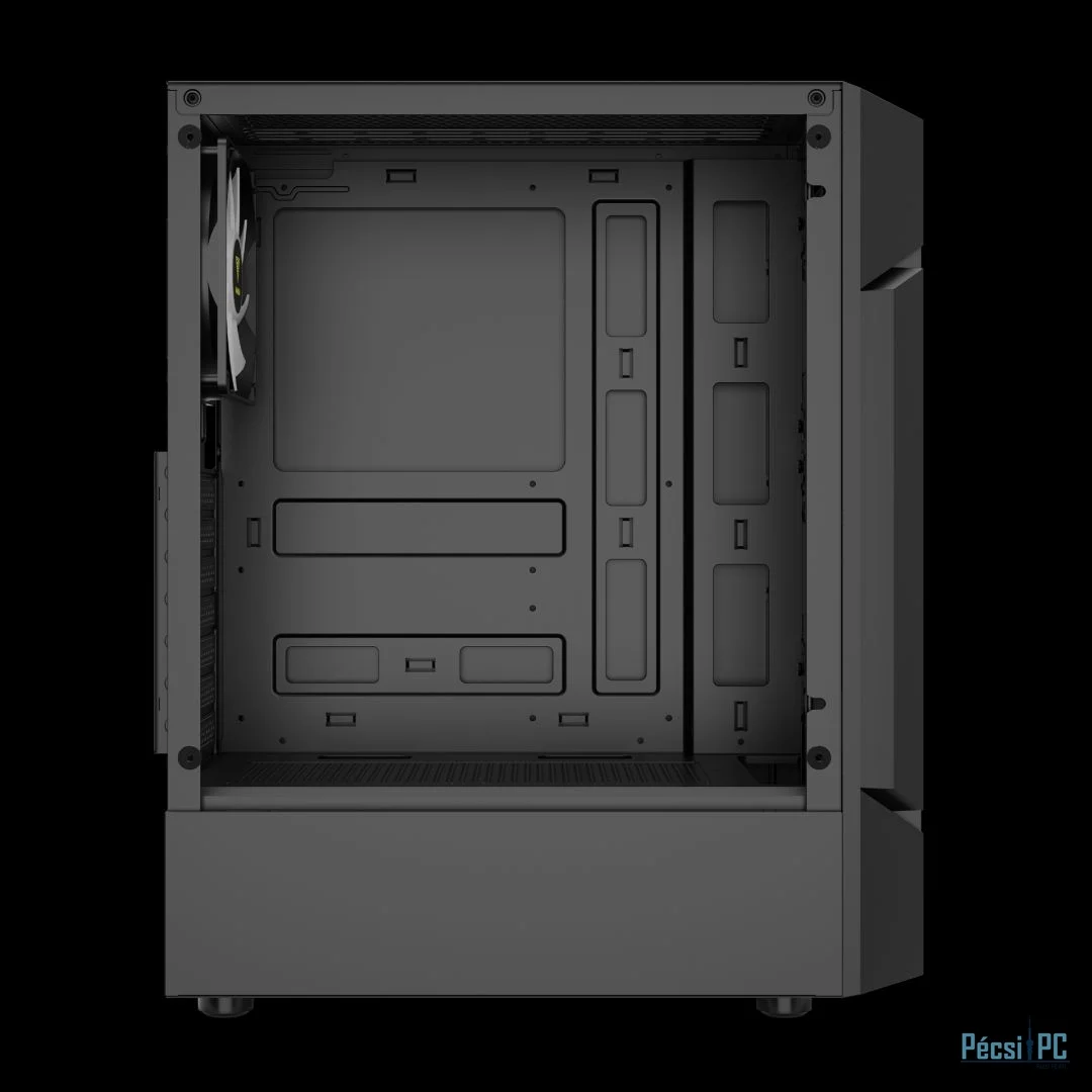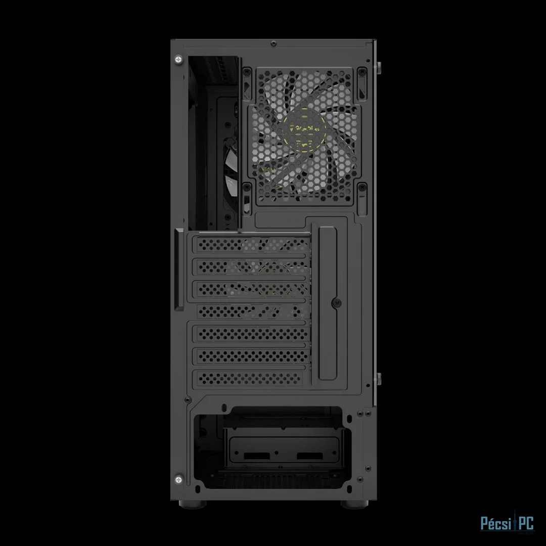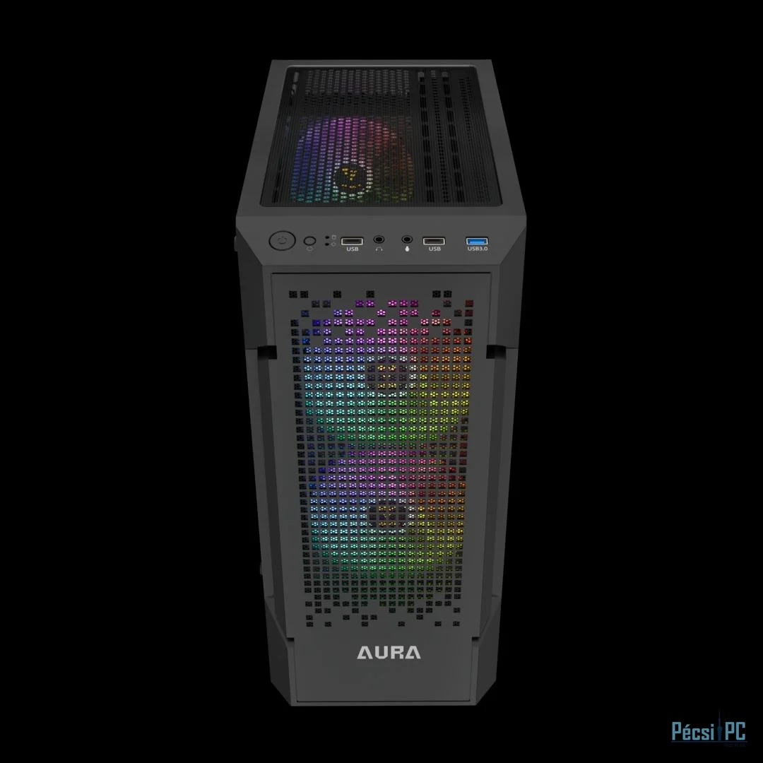 ATX, Black, 2x3,5", 2x2,5", 2xUSB2.0, 1xUSB3.0, Audio, Táp nélkül, 350x188x430xmm, Ventilátor:3x12cm, Tempered glass window, RGB, Gamer