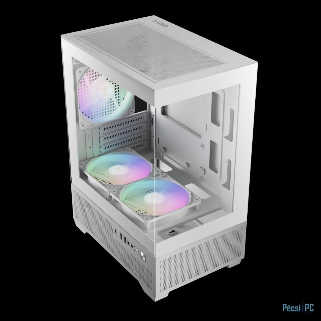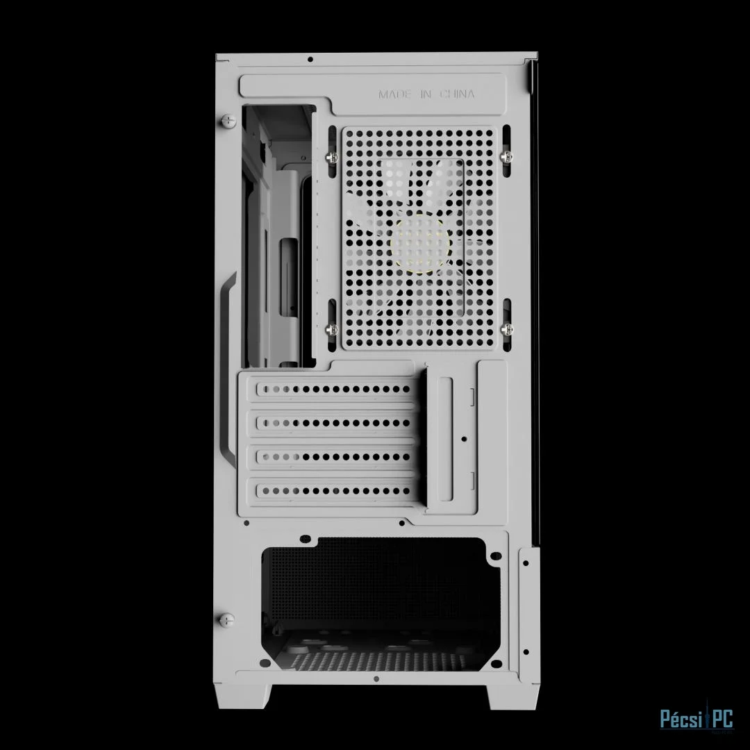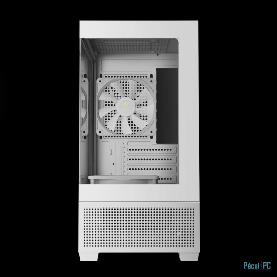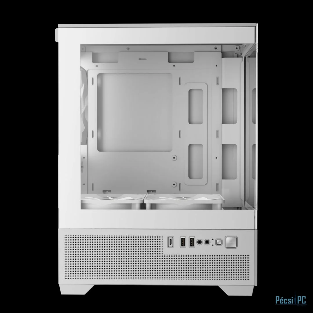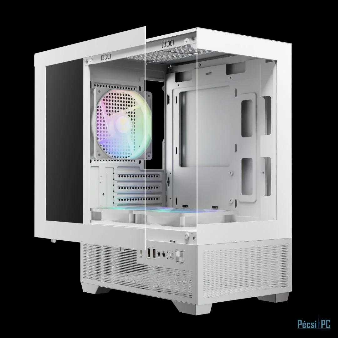 microATX, White, 1x3,5", 1x2,5", 2xUSB2.0, 1xUSB Type-C, Audio, Táp nélkül, 380x280x195mm, Ventilátor:3x12cm, Tempered glass window, RGB, Gamer