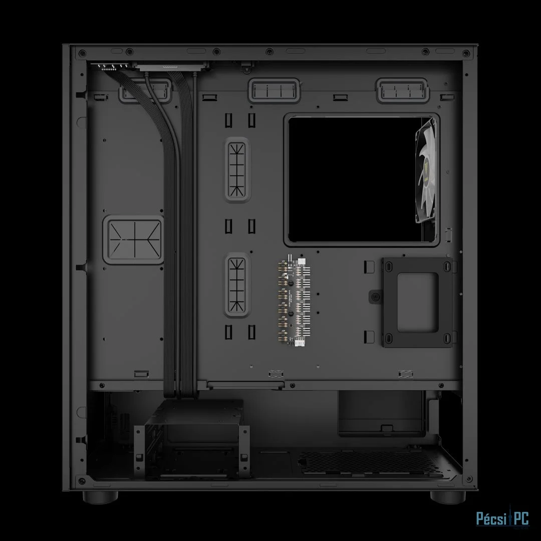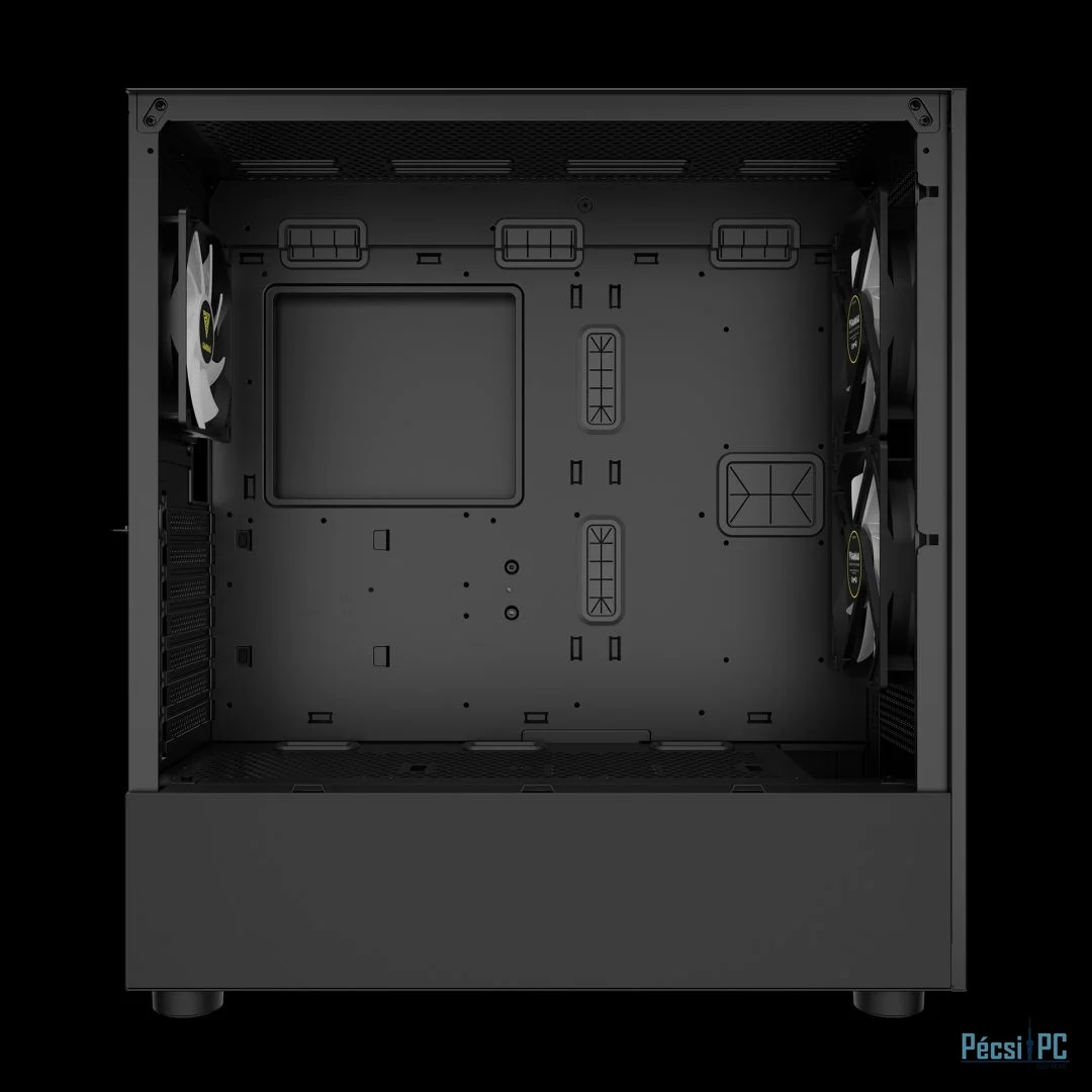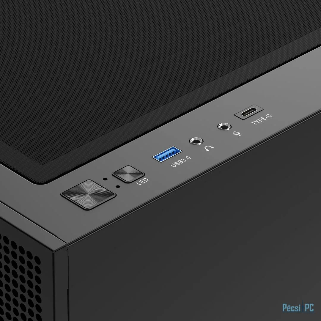E-ATX, Black, 2x3,5", 3x2,5", 1xUSB3.0, 1xUSB Type-C, Audio, Táp nélkül, 440x230x480mm, Ventilátor:2x14cm, 1x12cm, Tempered glass window, RGB, Gamer