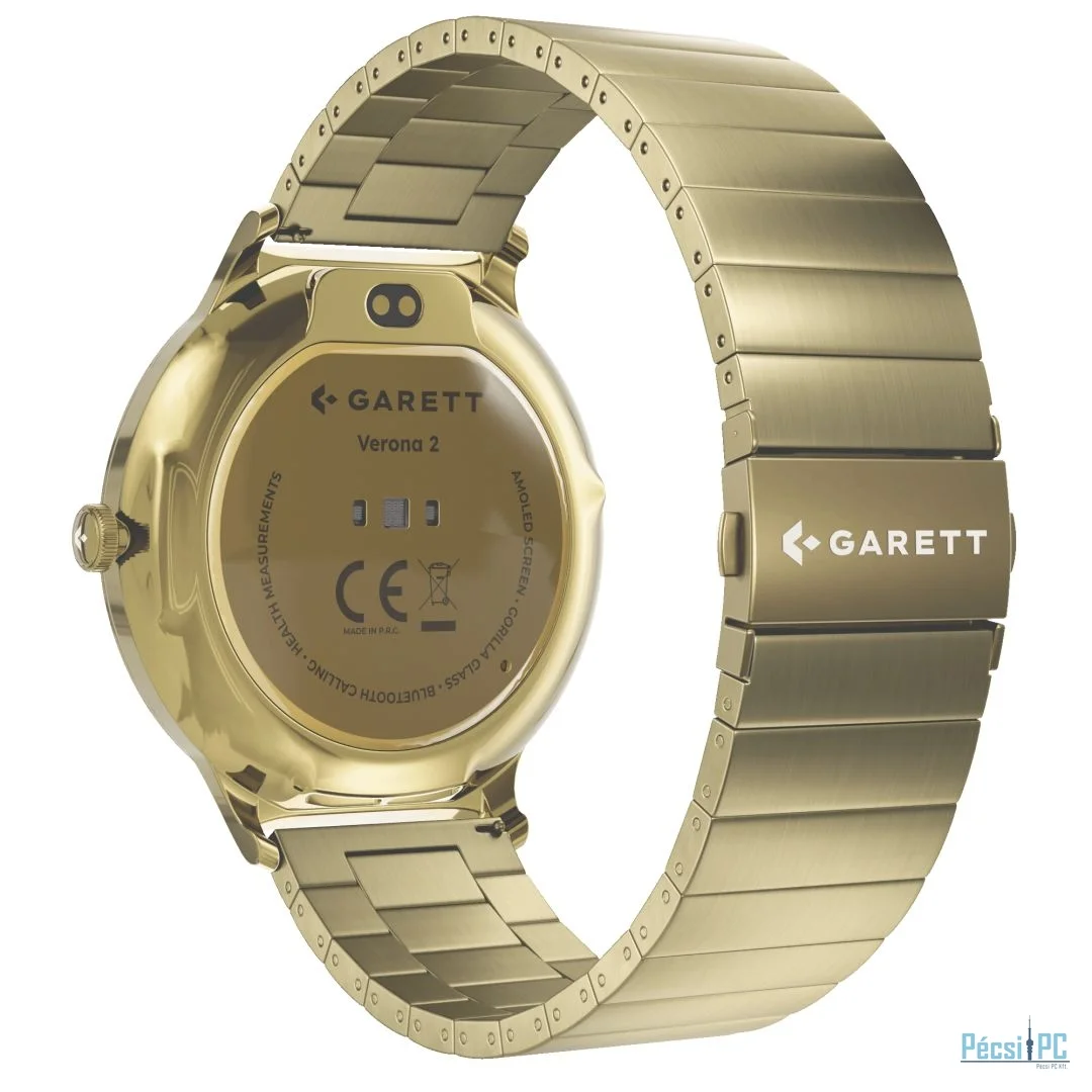 A Garett Verona 2 smartwatch az időtlen eleganciát a modern technológiával ötvözi, a stílust és a kényelmet szem előtt tartva tervezve. Ez a modell két változatban kapható: egy klasszikus acél karkötő és egy hálós stílusú karkötő, így könnyedén az ízlésedhez igazíthatod. Karcsú alakja, kifinomult részletei és finom kidolgozása tökéletesen illik bármilyen öltözékhez – a mindennapi viselettől az esti eleganciáig. Ez több, mint egy smartwatch – ez egy stílusállapotment.