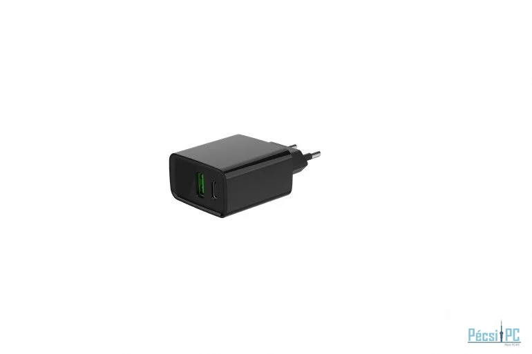 Adapter, 1xUSB-A, 1xUSB-C, 5V/9V/12V, 2,2A, 20W, QC, PD, Black