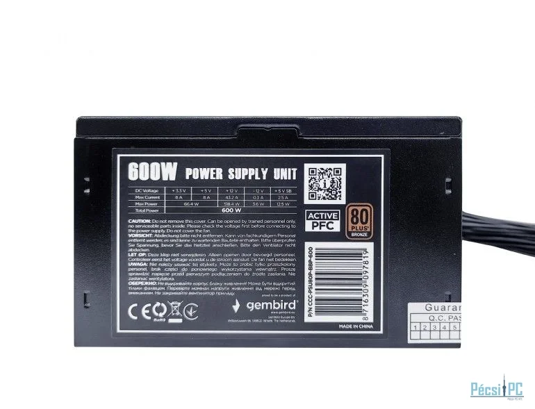 Gembird 600W 80+ Bronze CCC-PSU80P-BBP-600