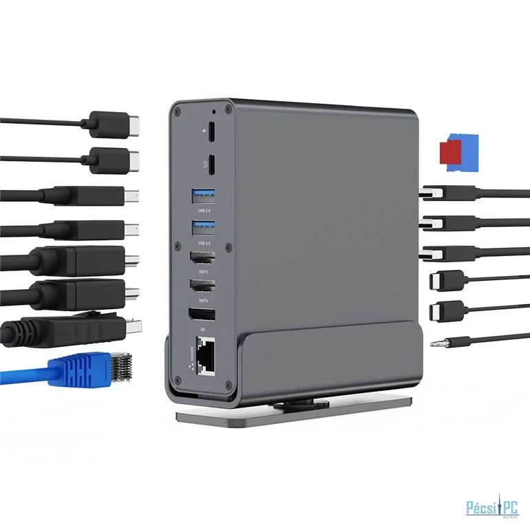 Csatlakozás USB-C, 5xUSB-A, 3xUSB-C, 2xHDMI, 1xDisplayport, RJ45, Kártyaolvasó