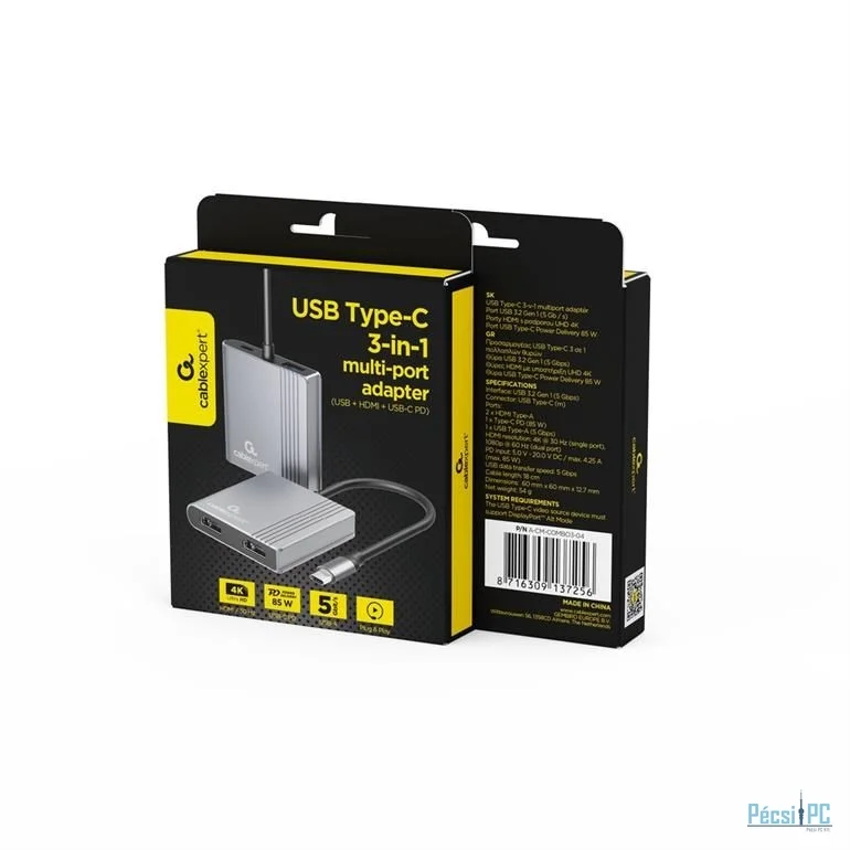 Gembird A-CM-COMBO3-04 USB Type-C 3-in-1 Multi-Port Adapter Space Grey