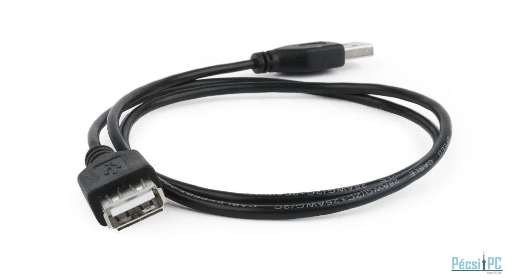 USB kábel, USB-A, USB-A, USB2.0, Male/Female, 0,75m, Black, Adatkábel
